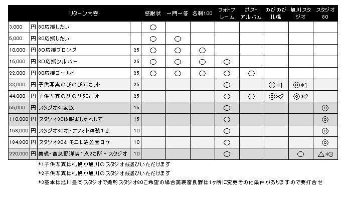 ※弊社子供写真のびのび(札幌・旭川)80応援プラン。