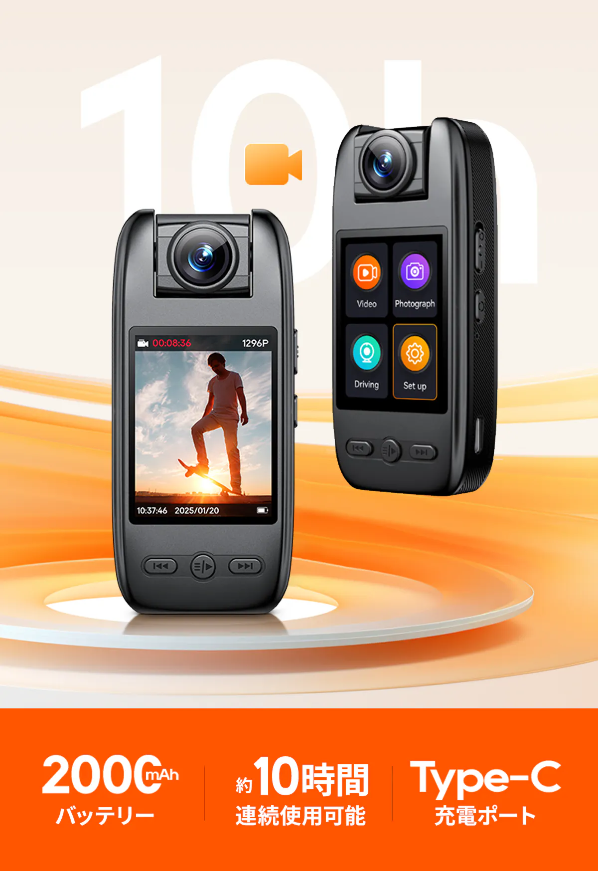 一般的なカメラが2~3時間程度の撮影しかできないのに対し、本製品は最大10時間の連続撮影が可能です。イベント、旅行、スポーツ観戦など、長時間の撮影を必要とするシーンでもバッテリー切れの心配はありません。