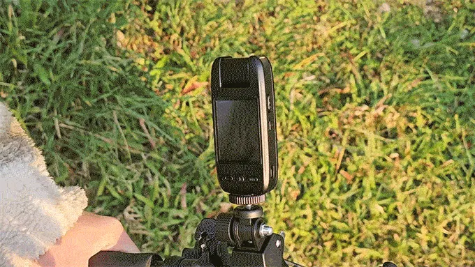 本製品は、2.5インチのIPS液晶ディスプレイを搭載しており、機器正面全体の43.2%を占めています。撮影中にリアルタイムで映像を確認できるため、構図やアングルの微調整もその場で簡単に行えます。
