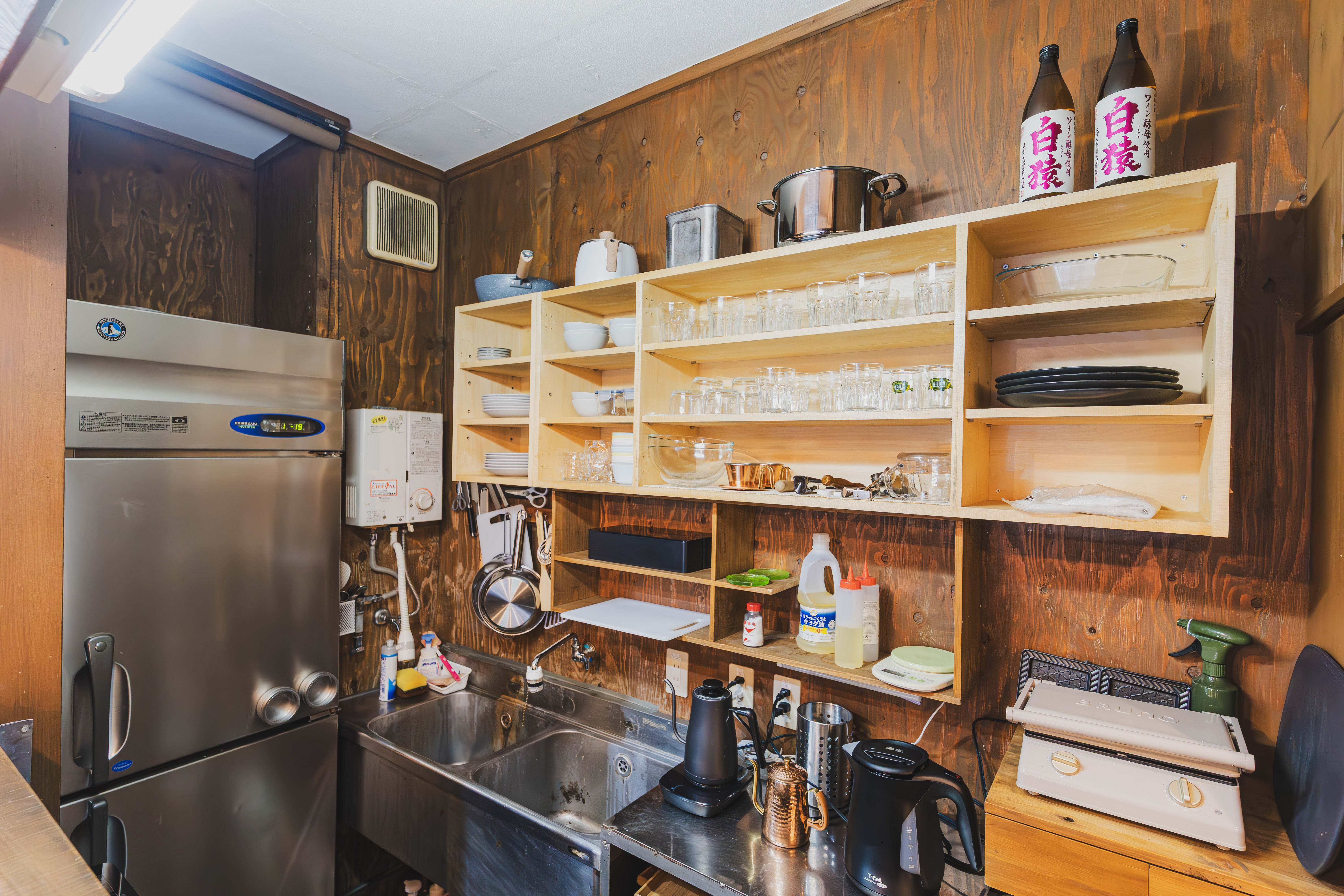 最大20人ほど収容可能な店舗で、テーブル席やテラス席もある昭和レトロな空間。以前はカフェとして運営していたため、軽飲食を提供するぐらいであれば十分な調理設備があります。