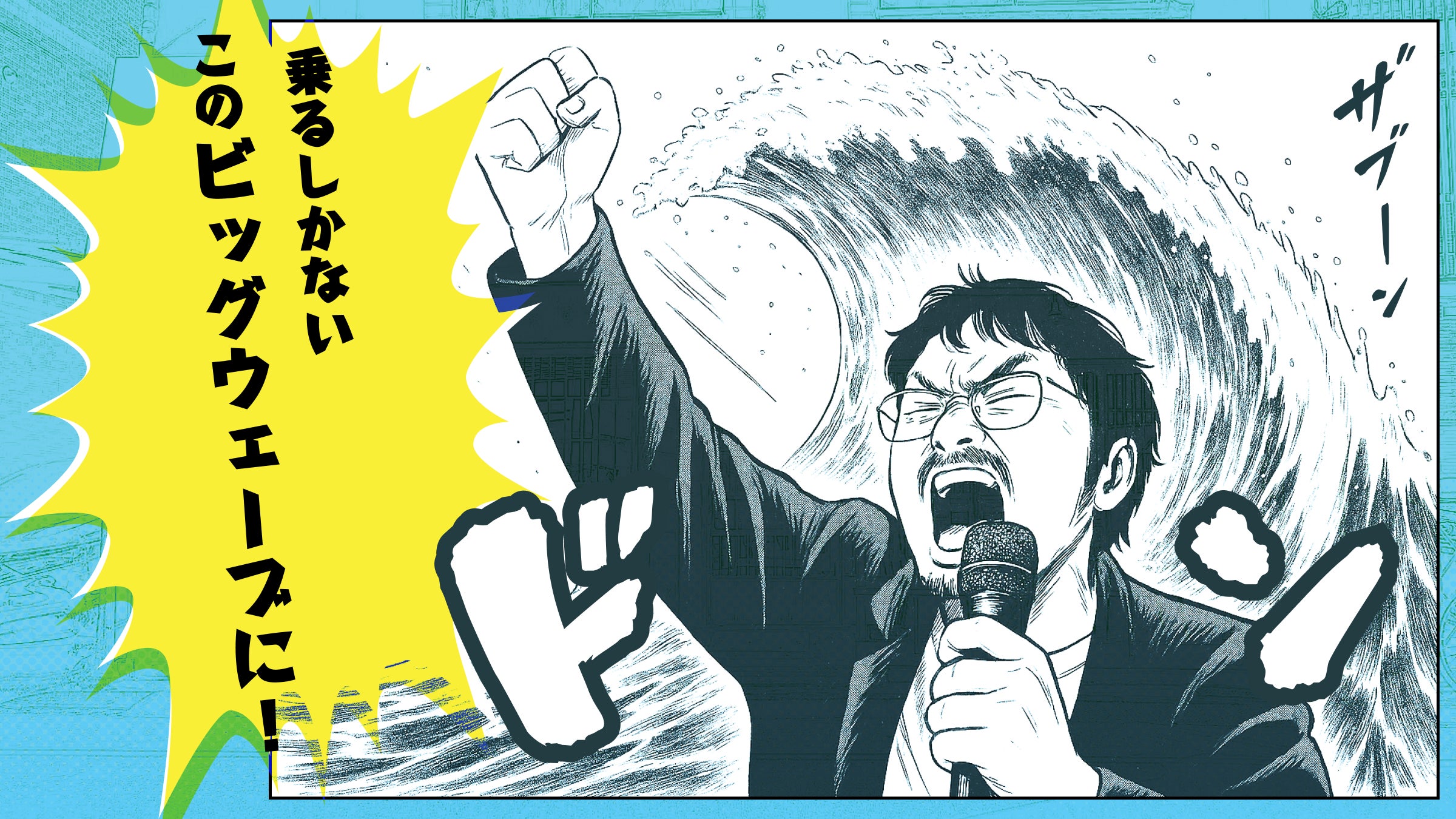 小さな波を重ねて、みんなで一年後、もう何年後かには大きな波が作れることを楽にしています。