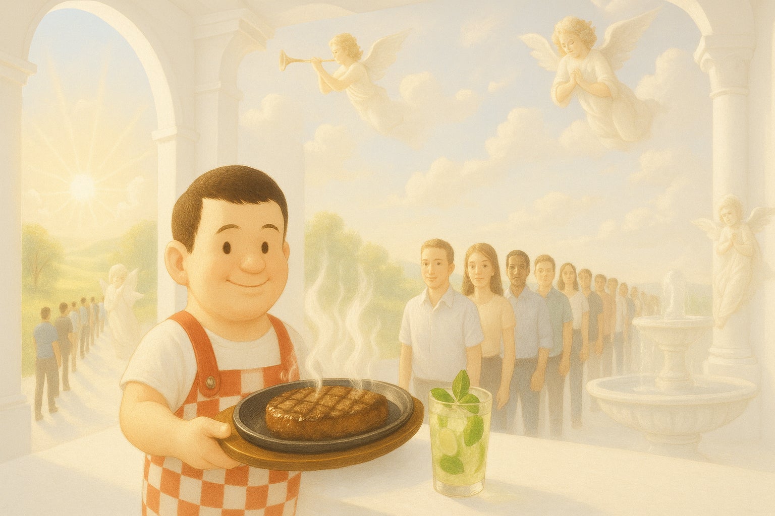 これほどになく爽やかなステーキハウス。BIGなBOYが焼きたてのステーキを運んでくれるお店です。