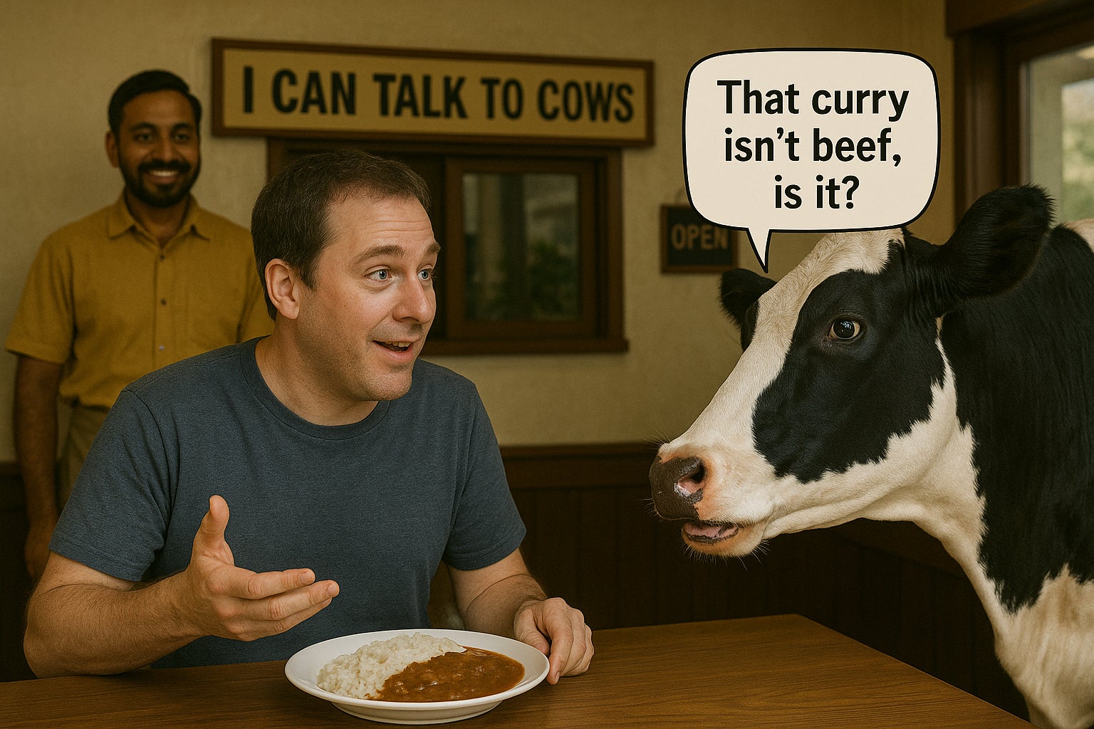 インドに古くから伝わる「牛と話せるクスリ」を混ぜ込んだカレー屋です。実際に牛と会話ができます。