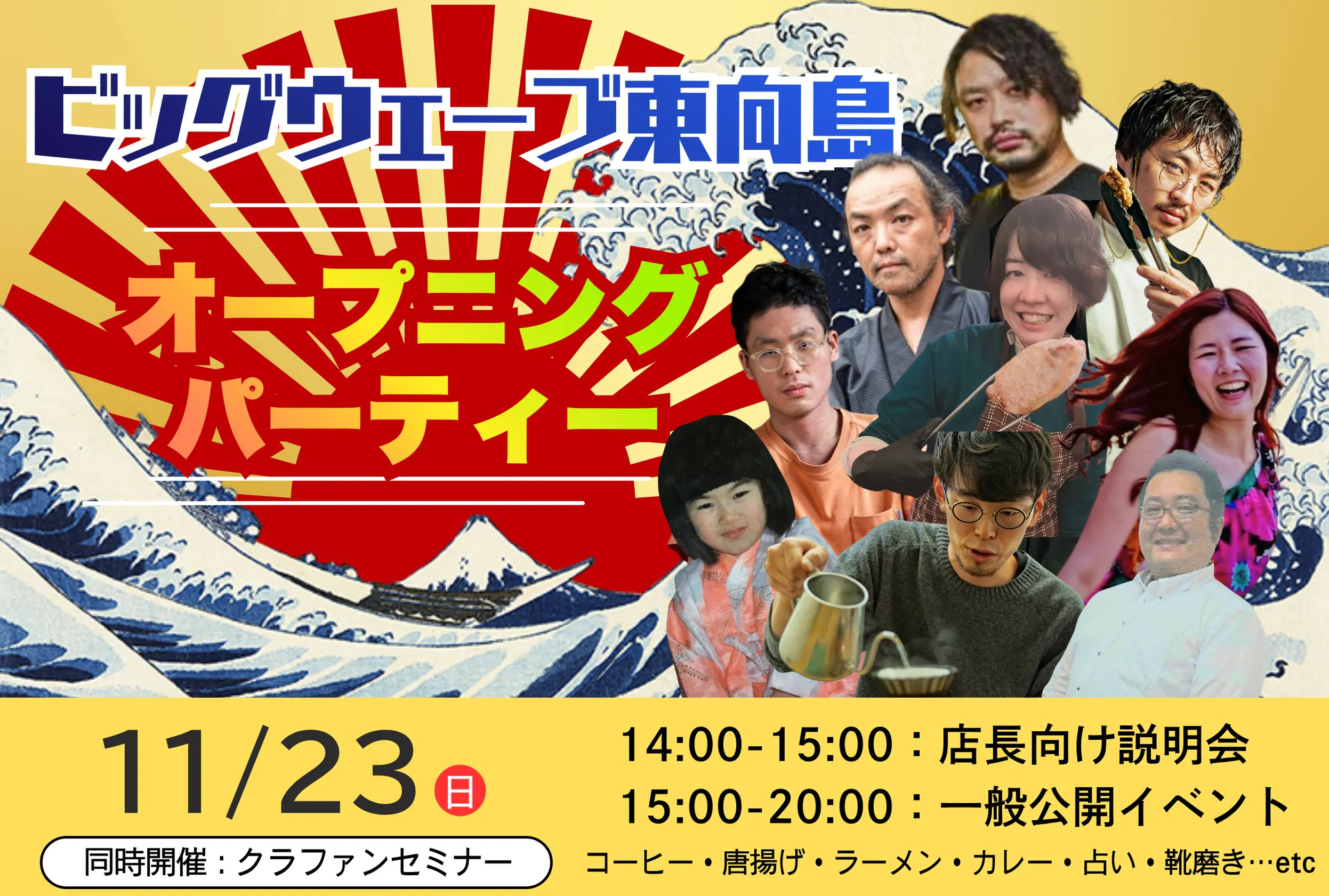 2025/11/18 11:22みなさんこんにちは。カズキタです。2025年11月23日(日)に、ビッグウェーブ東向島のオープニングパーティを実施します。支援されてる方も、そうでない方も出入り自由です。これを機に、追加のファッション店長・パッション店長も募集しますので、支援できなかった方はぜひご検討ください。詳細はタイムテーブルをご覧ください!当日会えることを楽しみにしております。 もっと見る