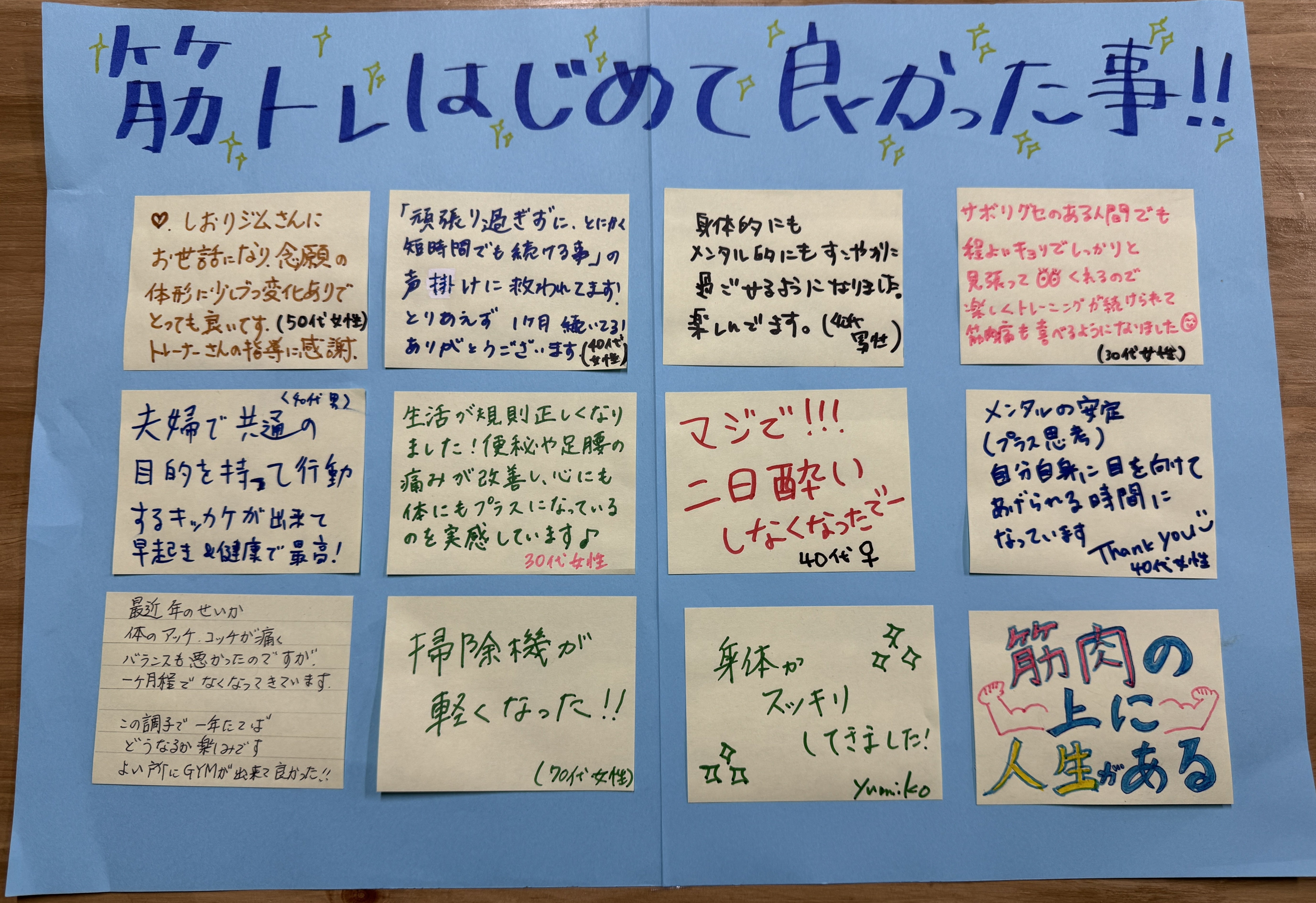 本日は会員様の筋トレを始めて良かったことを一部ご紹介しますね(^^)