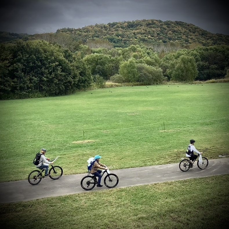 • 徒歩だけではなく、MTBなどを使い広範囲をカバーしながら“楽しみ”も取り入れてゴミ拾いを行います。