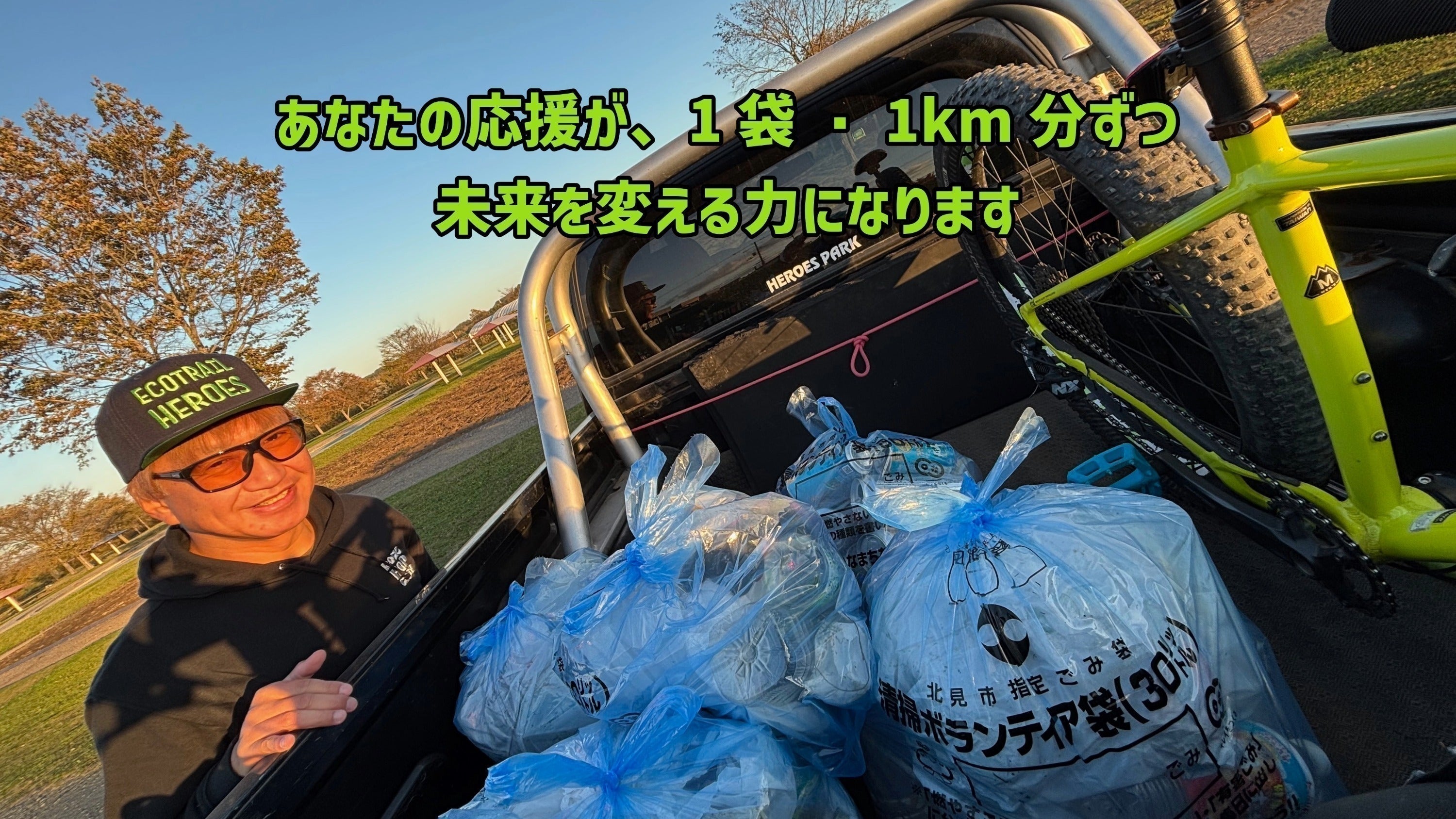 「車で走っている時には気づかなかったことが、自転車に乗るようになって見えてきました。自然の中を走り回るうちに、その美しさに惹かれながらも、至る所に散乱するゴミの存在に気づいたのです。美しい景色だと思っていた場所が、実はゴミに覆われている現実に直面しました。どこまで走っても、ゴミだらけの地球が広がっています。」
