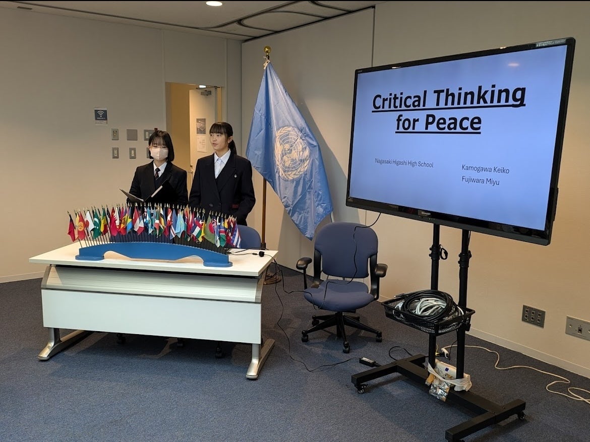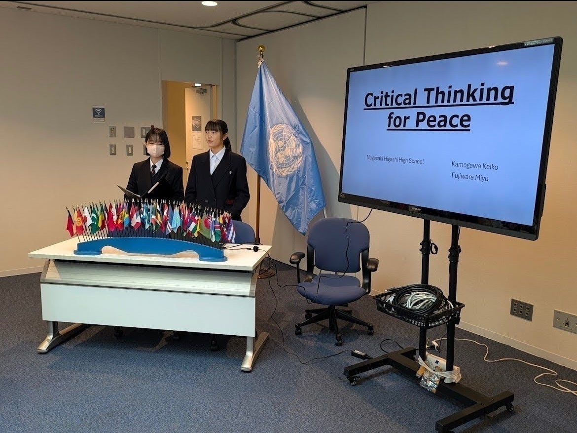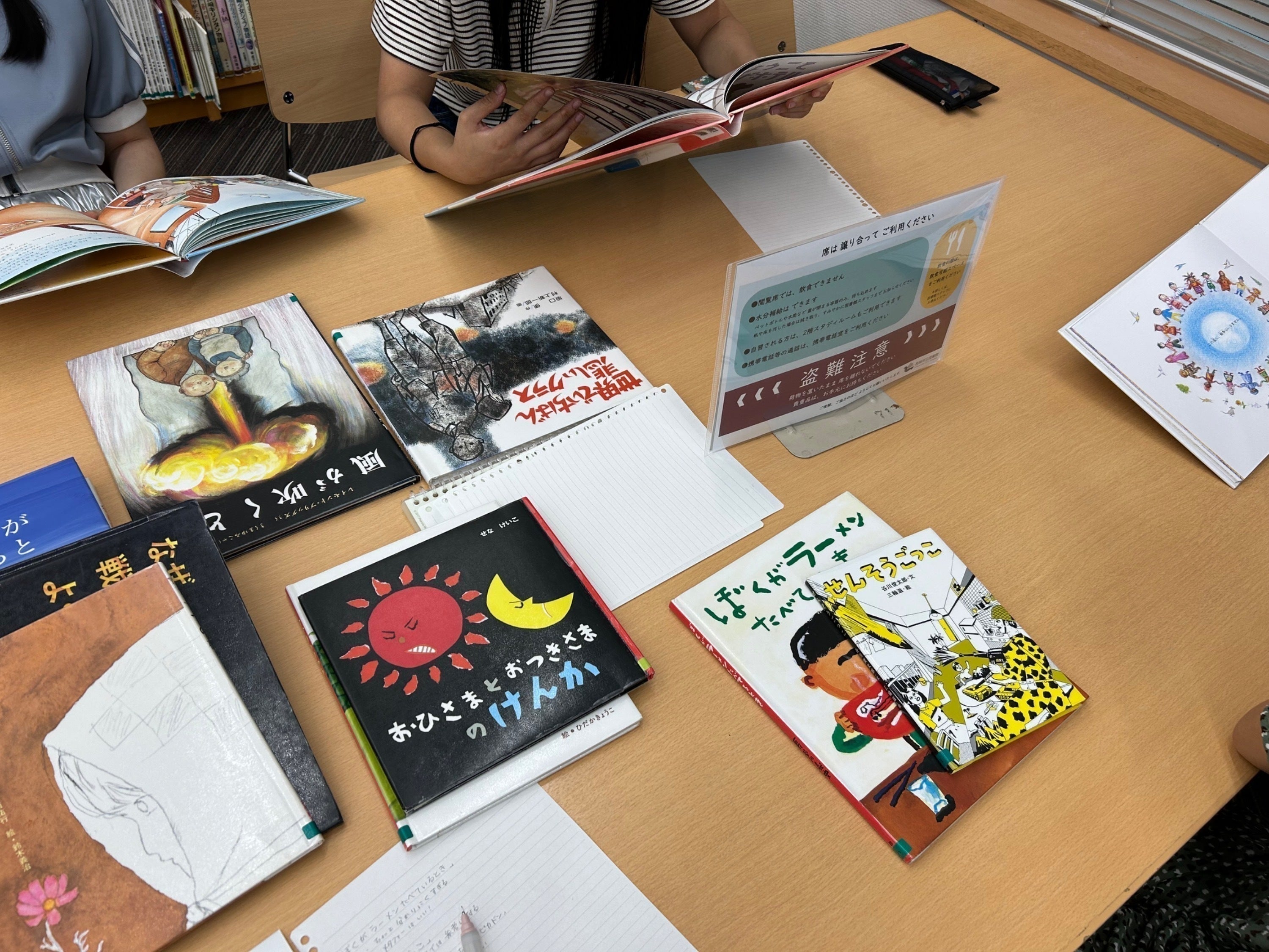 長崎県立長崎東高校2年の鴨川、植坂、小山、橋口、藤原です。私たちは、学校の探究学習で“Critical Thinking for Peace”のテーマを掲げ、平和をテーマにした絵本を用いた児童の批判的思考力の育成に取り組んでいます。