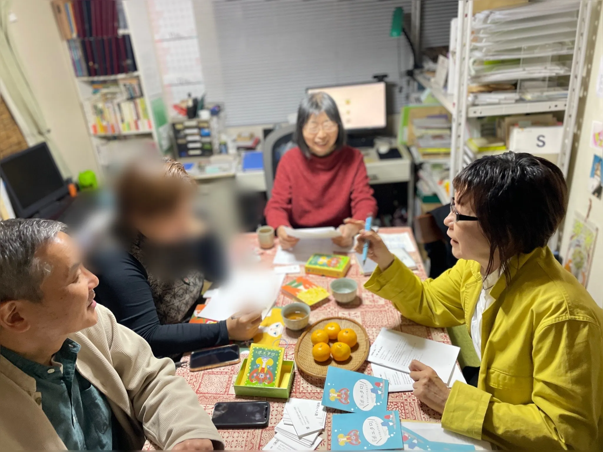 ↑<ポエタロ2>制作打ち合わせ中(2024年10月、地湧社にて)
