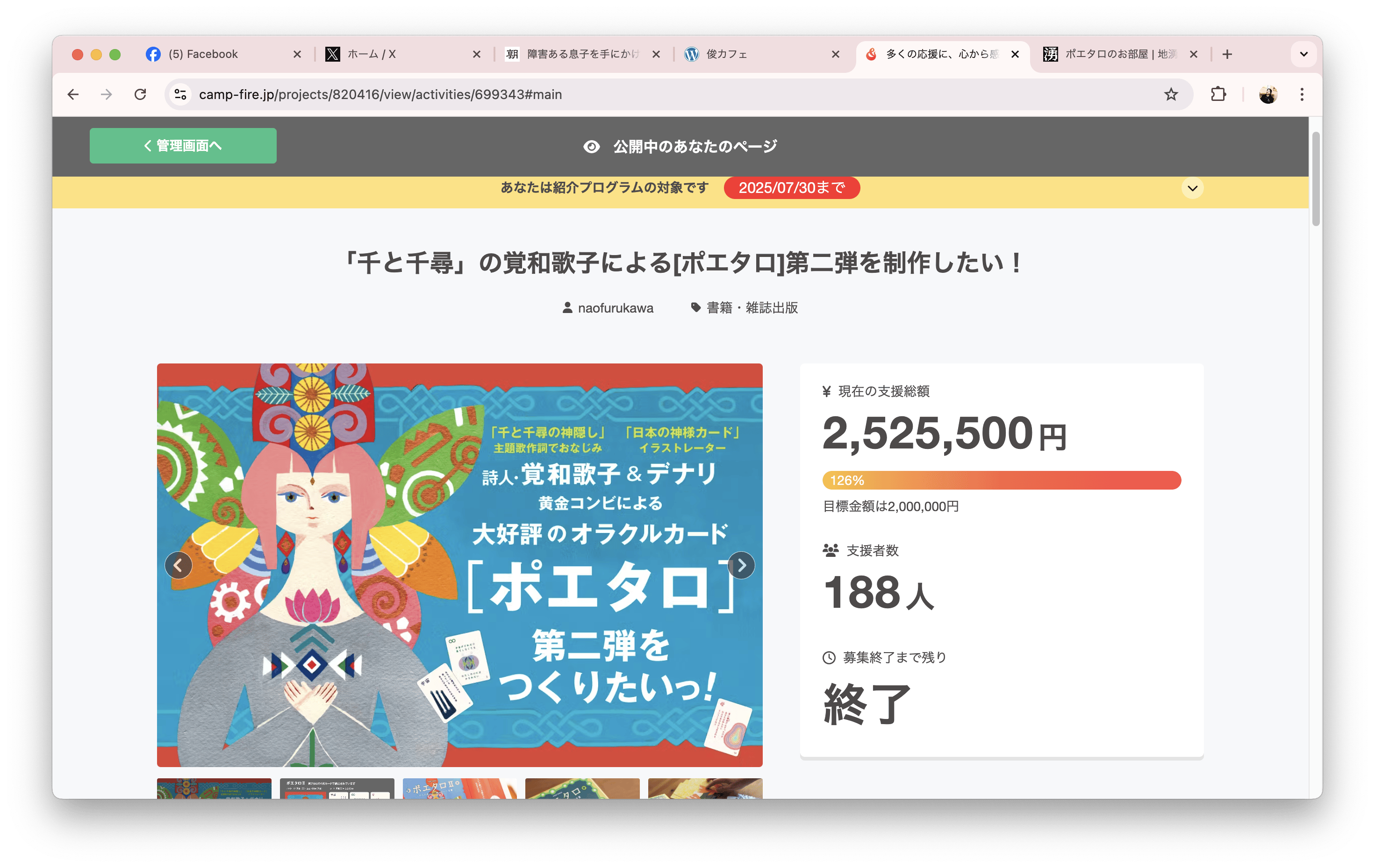 [ポエタロⅡ]制作に向けてのクラウドファンディングがゴールを迎えて1日経ちました。改めまして、皆様本当にありがとうございました。何度感謝の言葉をお伝えしても、足りないほどです。今日はポエタロの出版社である地湧社代表の植松明子さん、覚和歌子さんからみなさまへ、感謝の言葉が届きました。ぜひご一読くださいませ。〜*〜*〜*〜*〜*〜*〜*〜*〜*〜*〜*〜*〜*〜*〜このたびは『ポエタロ』第2弾制作のために絶大なるご支援をいただきまして、心から御礼申し上げます。おかげさまで、目標額をはるかに上回る皆さまからの御支援金を制作のために使わせていただけることとなりました。この目標に向かって邁進してくださった制作実行委員会の皆さまにも深く感謝いたします。たくさんの方々のポエタロへの愛と期待をしっかり受けとめました。地湧社の名前はひとりひとりの「いのち」の智慧が湧き出す姿を象徴しています。「ポエタロ」の詩の言葉はまさにその呼び水です。『ポエタロⅡ』誕生に立ち合うことができた幸せをかみしめながら、今日からは、一人でも多くの方が『ポエタロ』に出会うことができますよう力を尽してまいります。 地湧社 植松明子〜*〜*〜*〜*〜*〜*〜*〜*〜*〜*〜*〜*〜*〜*〜この度のクラファンでは、満額をはるかに上回るご支持をいただき、支援者の皆様には心よりお礼を申し上げます。地湧社さん、本当によかったですね。行き詰まる世の中に言及するまでもなく、今を生きるひとりひとり、真実の自分と出会うことの重要性は、政治の変革と同様に深く大きな意味を持っています。自らを見つめ自らに問いかけ続けることは、個人の内面の変革に通じているからです。そのためのツールとして、一人でも多くの人のお手元に届くようにと作者は祈ります。最後に、昼夜問わず奔走して下さったポエタロ製作実行委員会の皆さんに、心からお礼を申し上げます。ありがとうございました。引き続き共に歩き続けて頂けますように。 覚和歌子〜*〜*〜*〜*〜*〜*〜*〜*〜*〜*〜*〜*〜*〜*〜