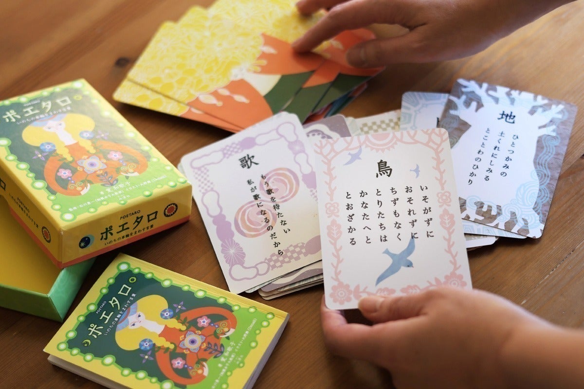 その覚さんが「詩は読み手によって解釈が自由。オラクル(神託)も同じで、タロットなど読み方によって人を励ましたり癒やしたりする。」という思いから生み出したのが<ポエタロ>です。2016年の発売以来、多くの方の手に渡り、みなさまの深層心理に触れ、喜ばれています。