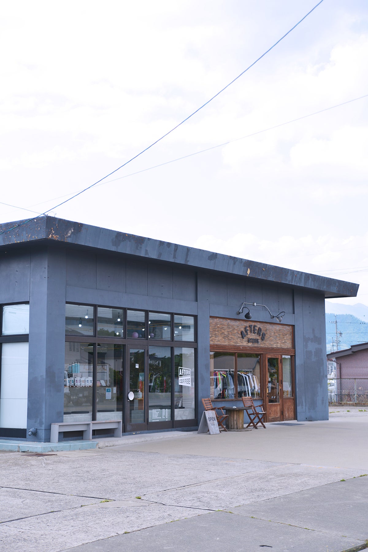 前置きが長くなりましたが、今回松本市に開業予定の新店舗はアパレルブランドAFTERS®︎の販売と、コーヒースタンドAFTERS COFFEEを1店舗に合体したお店です。自家焙煎コーヒーやお酒(駅前なのでお酒もやります!)とおつまみ、フードを楽しみながら、洋服のお買い物もできる飲食店+洋服屋を目指しています。
