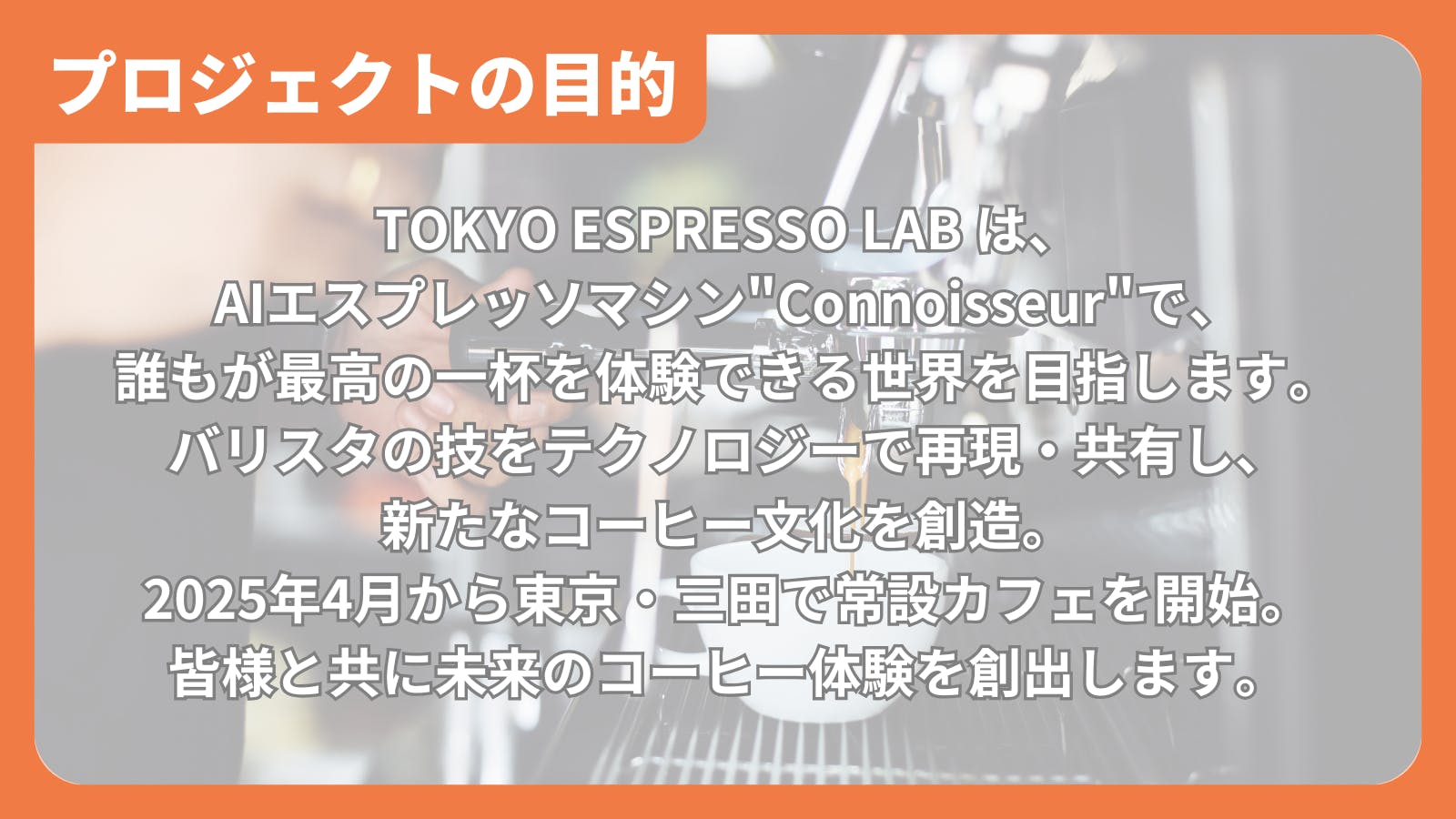 ESPRESSO LABを起点に、誰もがバリスタの最高のエスプレッソを楽しめる世界を実現します。