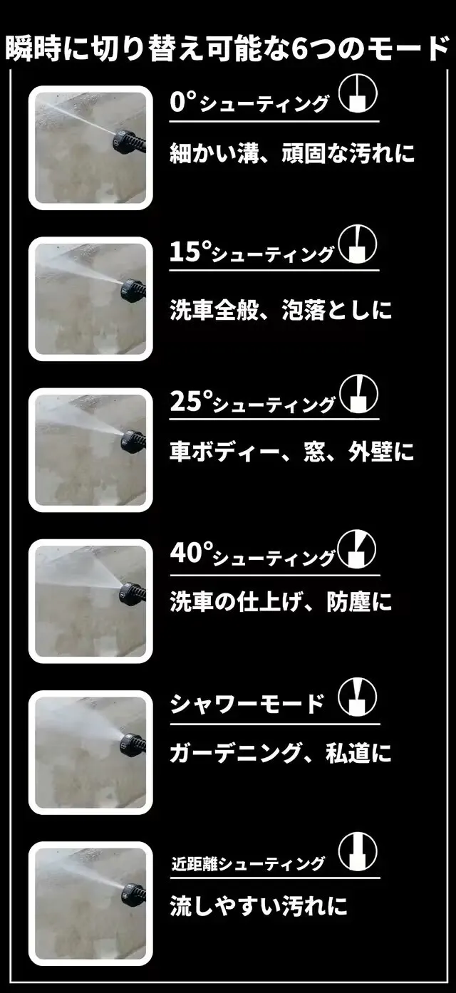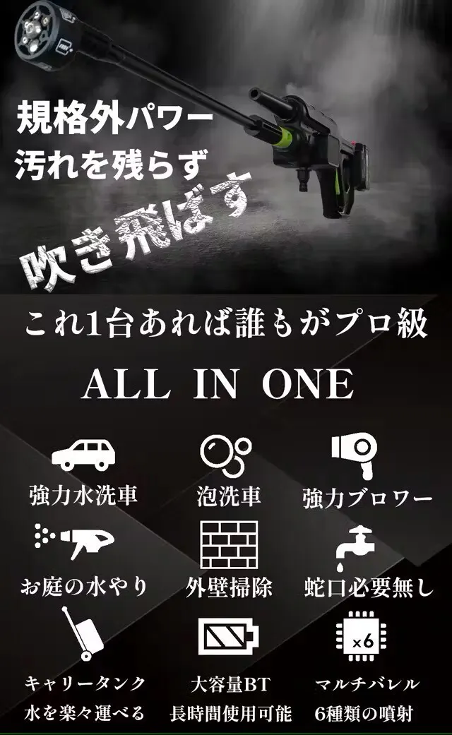 高速回転により従来のハンドタイプ洗車機では出せなかった高圧噴射が可能に!