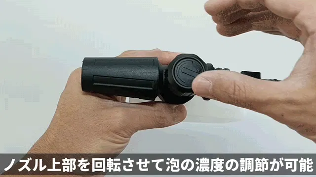 上部にある摘みで調節し、お好みの泡を発泡する事が出来ます。