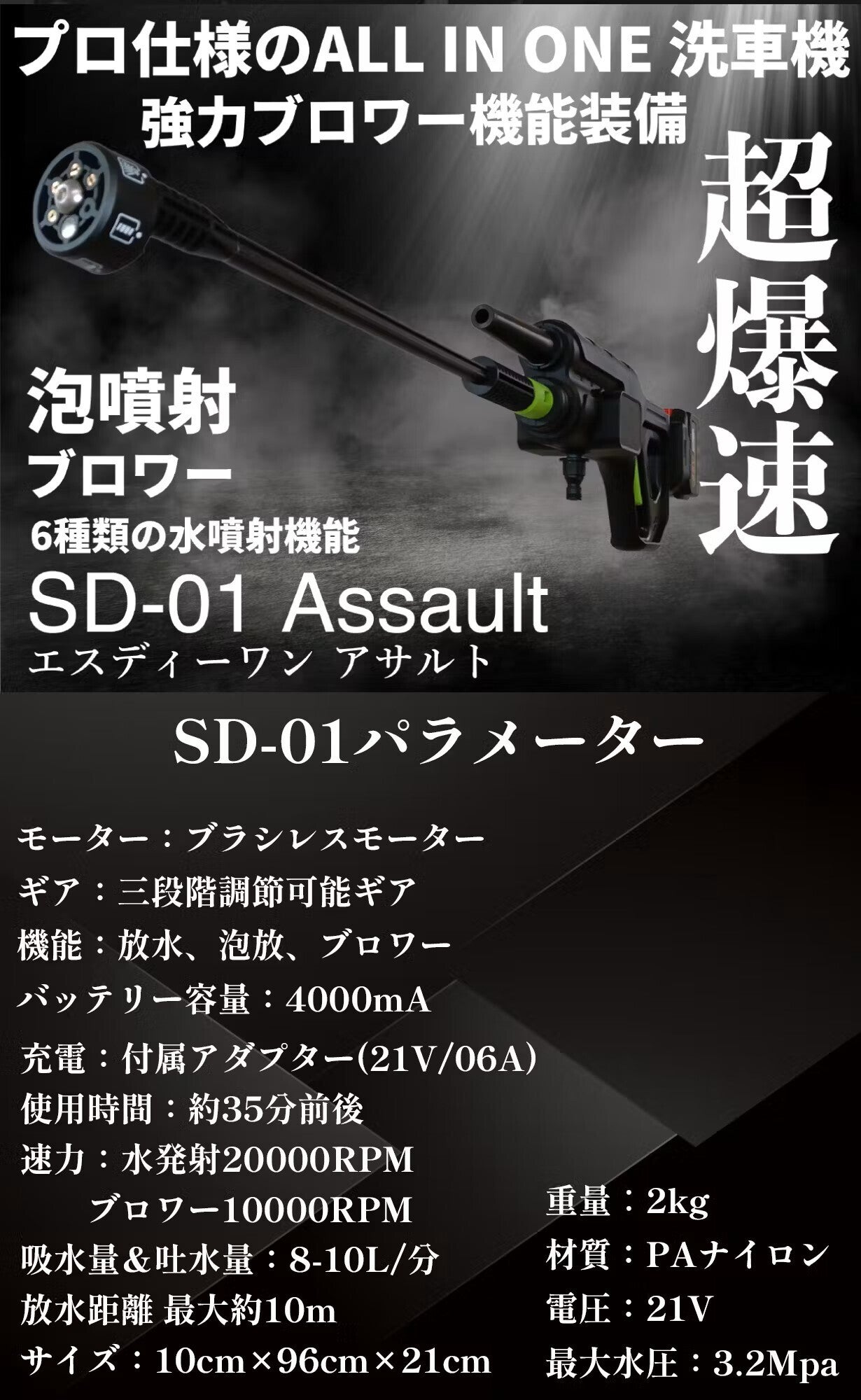 SD-01 アサルトで洗車を100倍楽しく!