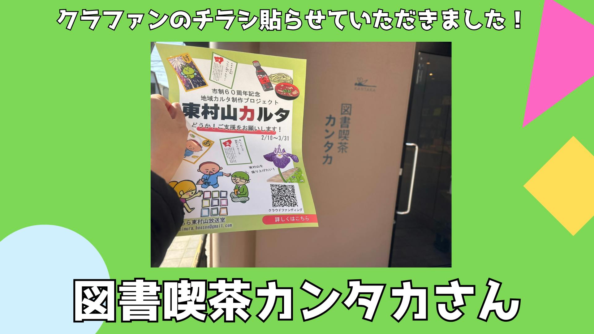 東村山市秋津町の図書喫茶カンタカ さんにお邪魔して、クラウドファンディング のチラシを貼らせていただきました!ご支援、よろしくお願いします!