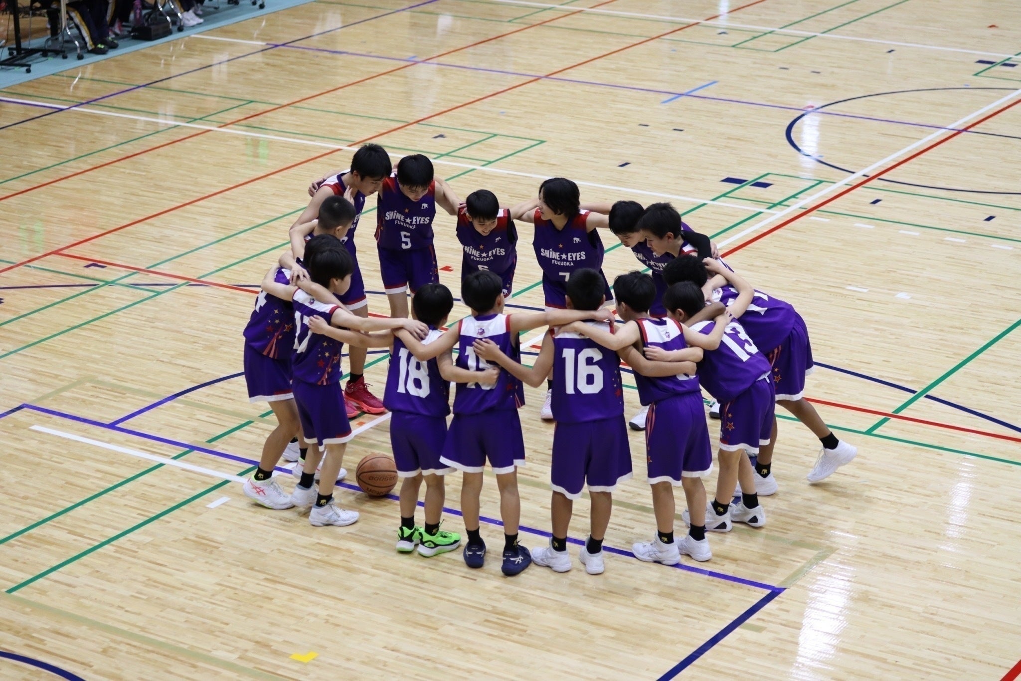 私たちは、福岡県福岡市西区で活動しているミニバスケットボールクラブチーム「SHINE☆EYES」です。バスケットボールを通して多くの方に勇気を与えられるような“熱いチーム”を目指して日々活動しています。子どもたちは、技術面だけでなく、それぞれ違う個性を持ったチームメイトとコミュニケーションをとりながら、チームワークや粘り強く努力し続ける事の大切さを学んでいます。