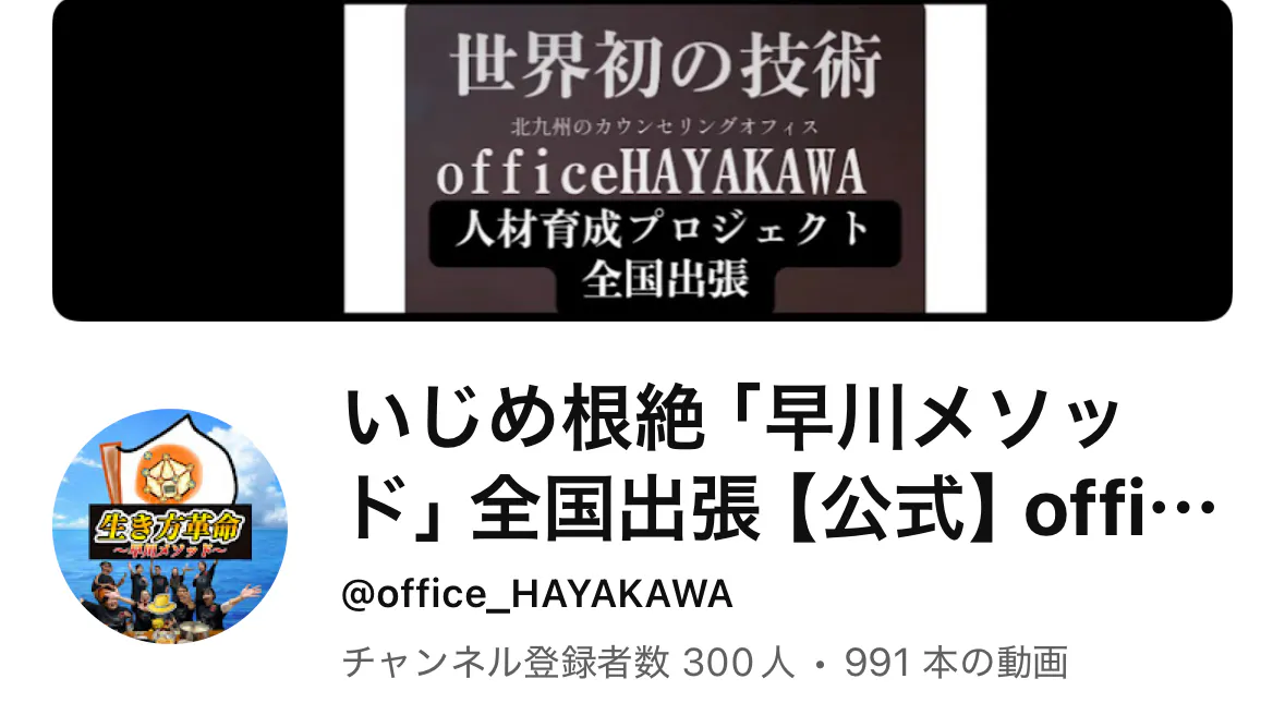 「早川メソッド」ホームグラウンドのカウンセリングオフィスofficeHAYAKAWAの YouTubeチャンネル登録者が300人になりました!ありがとうございます!https://youtube.com/@office_hayakawa?si=6oy-e_t4tGiXUJ2_