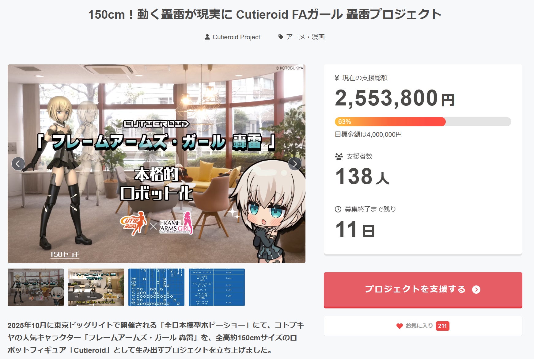支援の輪が広がるほど、「150cmの動く轟雷」という夢の実現に近づきます。