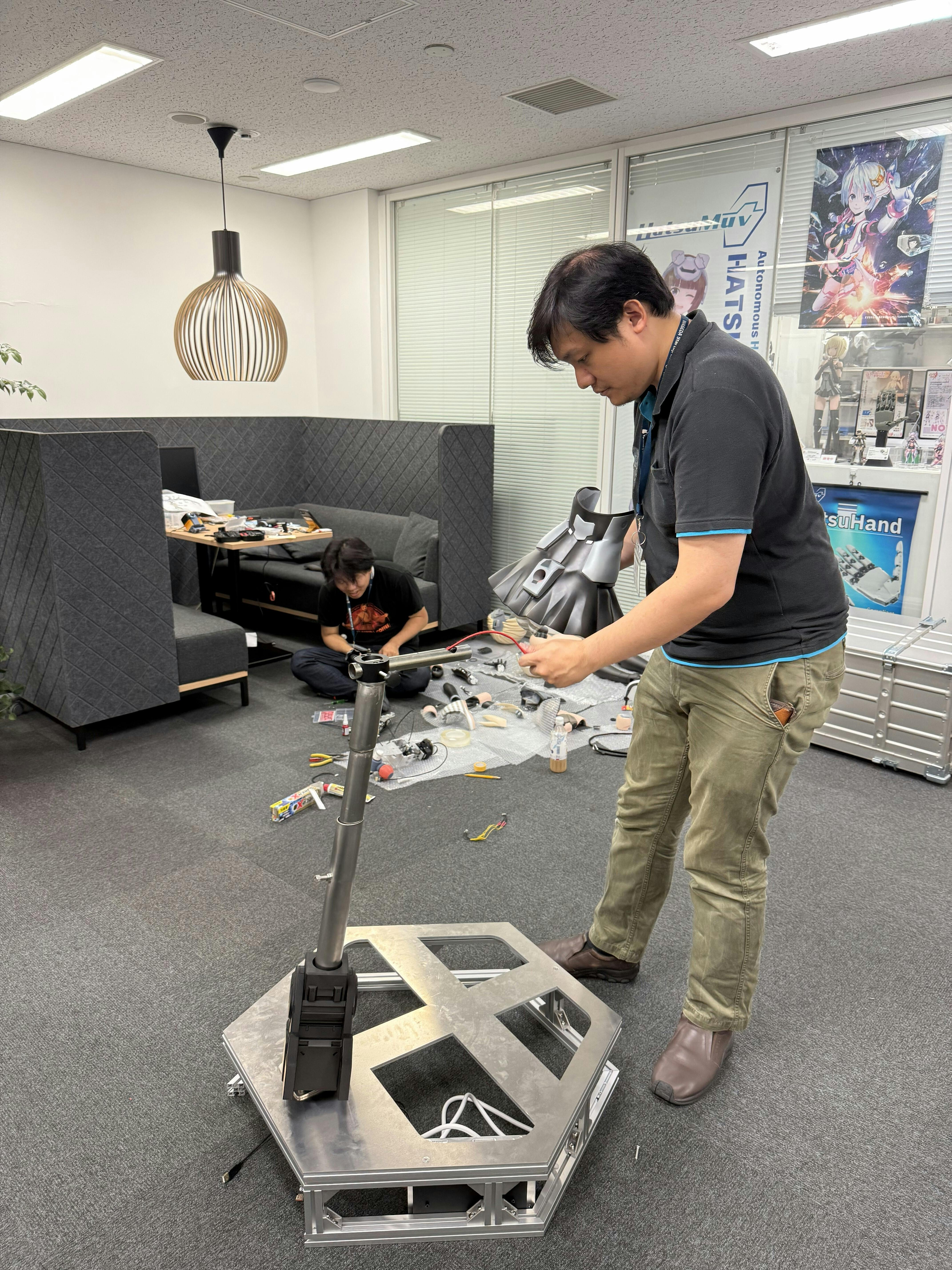 組み立て工程では、配線経路の最適化・可動干渉の除去調整を繰り返し、150cmという大型スケールにおいても安定した動作と自然な可動を実現しました。 また、関節可動域の調整を行い、動作時の滑らかさと静音性を両立。