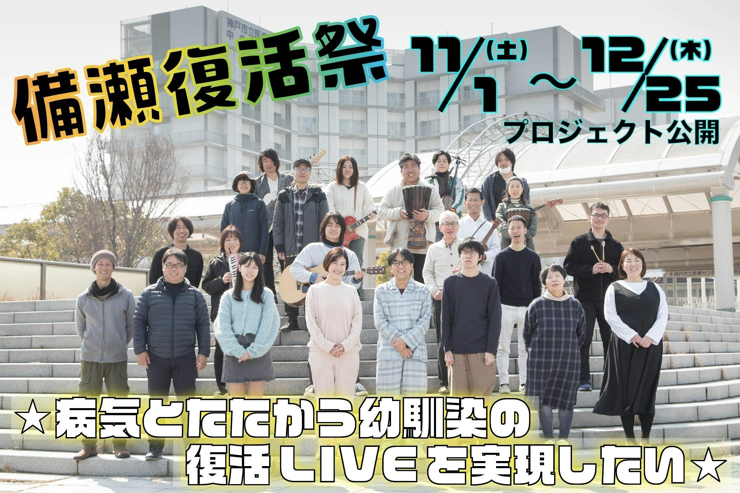 彼は大切な人達のために腎移植手術を選択し、未だ様々なリスクとたたかっています。そんな彼を目の当たりにして私に出来ることは何かと考え行動することが自分の中のロックだとおもい、復活ライブ「備瀬復活祭」実現のためのクラウドファンディングを起ち上げました。「自分ひとりの人生じゃない!」障害と共に歩む彼の勇気を感じて、周囲の仲間たちやBirth神戸ではたらく障害を持つアーティストたちがプロジェクトに協力しています。音楽ライブという形をつうじて、少しでも病気や障害と向きあっている人達や多くの人達へメッセージを届けることが「備瀬復活祭」の目的です。