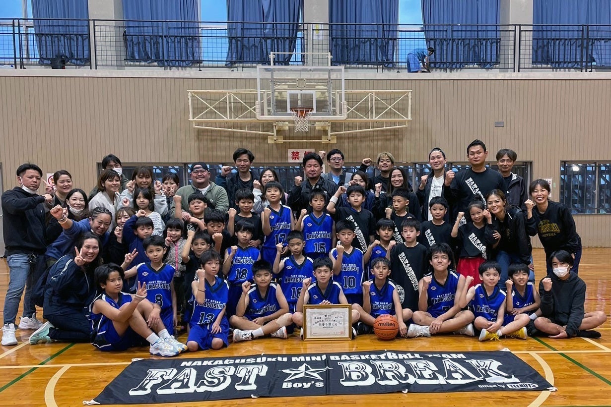 中城小学校男子ミニバスケットボール部は、創部41年目にして初めて県外派遣の権利を獲得しました。