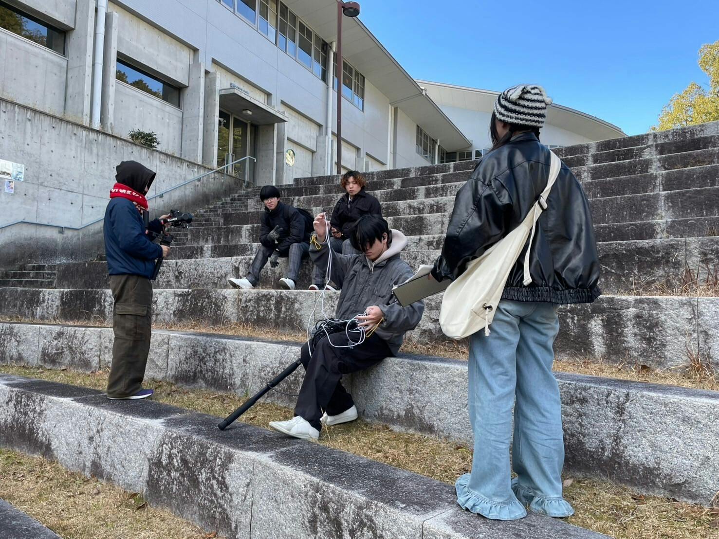 この日は天候に恵まれ、比較的暖かい中で撮影が行われました。3日目にもなると、全員の動きに余裕ができてきて、前2日に比べて穏やかな空気感で進みました。