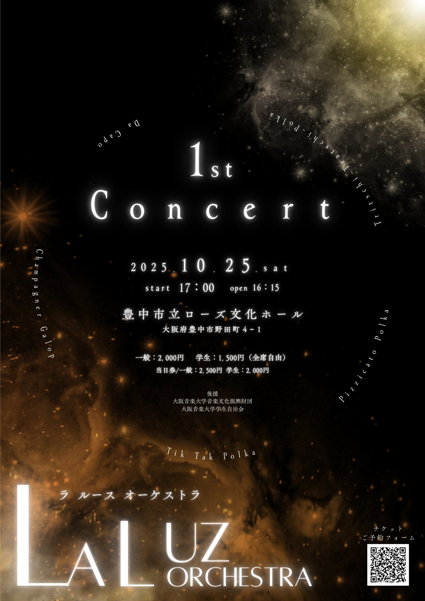 2025/09/02 06:36皆さまいかがお過ごしでしょうか。9月に入り、コンサートまで残り2ヶ月をすぎました。さて、今回はコンサートのフライヤーが完成したことをご報告させていただいます!こだわって作成したので、ぜひご覧ください!!ぜひ、お時間ありましたらお越しください!Instagramでも発信しているので、ぜひご覧になってもらえると嬉しいです!↓↓↓https://www.instagram.com/la_luz_orchestra?igsh=MW5uN3k0NG1scW5udg%3D%3D&utm_source=qr皆さまにお会いできることを楽しみにしております。 もっと見る
