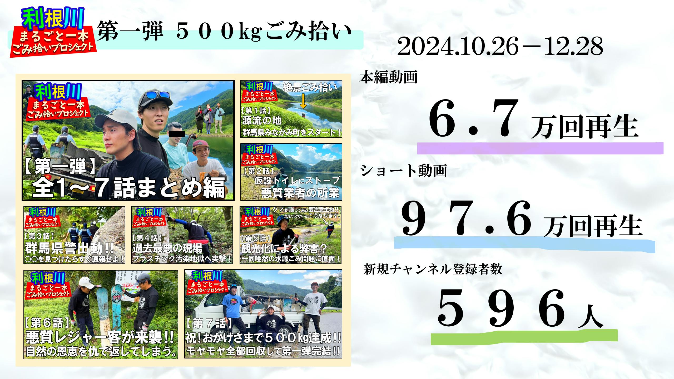 2025/07/04 19:00皆さまのご支援のおかげにより「利根川まるごと一本ごみ拾いプロジェクト 第二弾利根川500kgごみ拾い」を無事に終了することができました。心より感謝申し上げます。今回は、利根川沿いの約5.8kmにわたる区間を対象に、合計779.5kgのごみを回収しました!これにより、第一弾と合わせた累計回収量は単位が上がり、約1.4トンです!!また、無事にすべての動画配信が完了し、ご支援いただいた皆様に全貌をお届けできてホッとしております!【 今回の清掃で見えてきたごみの実態】空き缶やペットボトルなどのポイ捨てごみはもちろんのこと、今回は特に家庭ごみや農業資材などの「埋没ごみ」が多く見受けられただけでなく、地中に埋められ、長い時間が経過していたと思われるごみもありました。また、テレビやバイクなどの不法投棄の現場にも多数遭遇し、その深刻さを改めて実感しています。川辺の橋の下や大きな樹の下には、バーベキュー後と見られる飲食ごみが残され、ラフティングのスタート地点には、衣類・食品の残骸、プラスチック・ゴム片などが散乱していました。こうした現場を目の当たりにし、清掃活動の重要性と同時に、発生源対策や啓発活動の必要性を強く感じている次第です。【第三弾を2025年9月に実施予定】「利根川まるごと一本ごみ拾いプロジェクト」は、単なる清掃イベントではなく、活動自体を成立させることで活動を全国へ拡大させ、日本を世界一安全で豊かな水資源の国にすることが最終目標です!そして、SDGs(特に目標14「海の豊かさを守ろう」、目標15「陸の豊かさも守ろう」)を実践する持続可能な環境アクションを世界へ展開させたいと考えています!今回の第二弾は、第一弾よりも多くの方々にご参加いただいてパワーアップした結果、前回以上のごみを回収することができました。9月に実施予定の第三弾においても、高い環境意識と公共性を兼ね備えたみなさんと次の活動でもご一緒できることを楽しみにしております!今後ともどうぞよろしくお願いいたします!またお会いしましょう!!※現在、返礼品の準備を整えているところでございます!順次、メッセージをお送りいたしますので、お手元に届くまでもう少々お待ちくださいませ! もっと見る