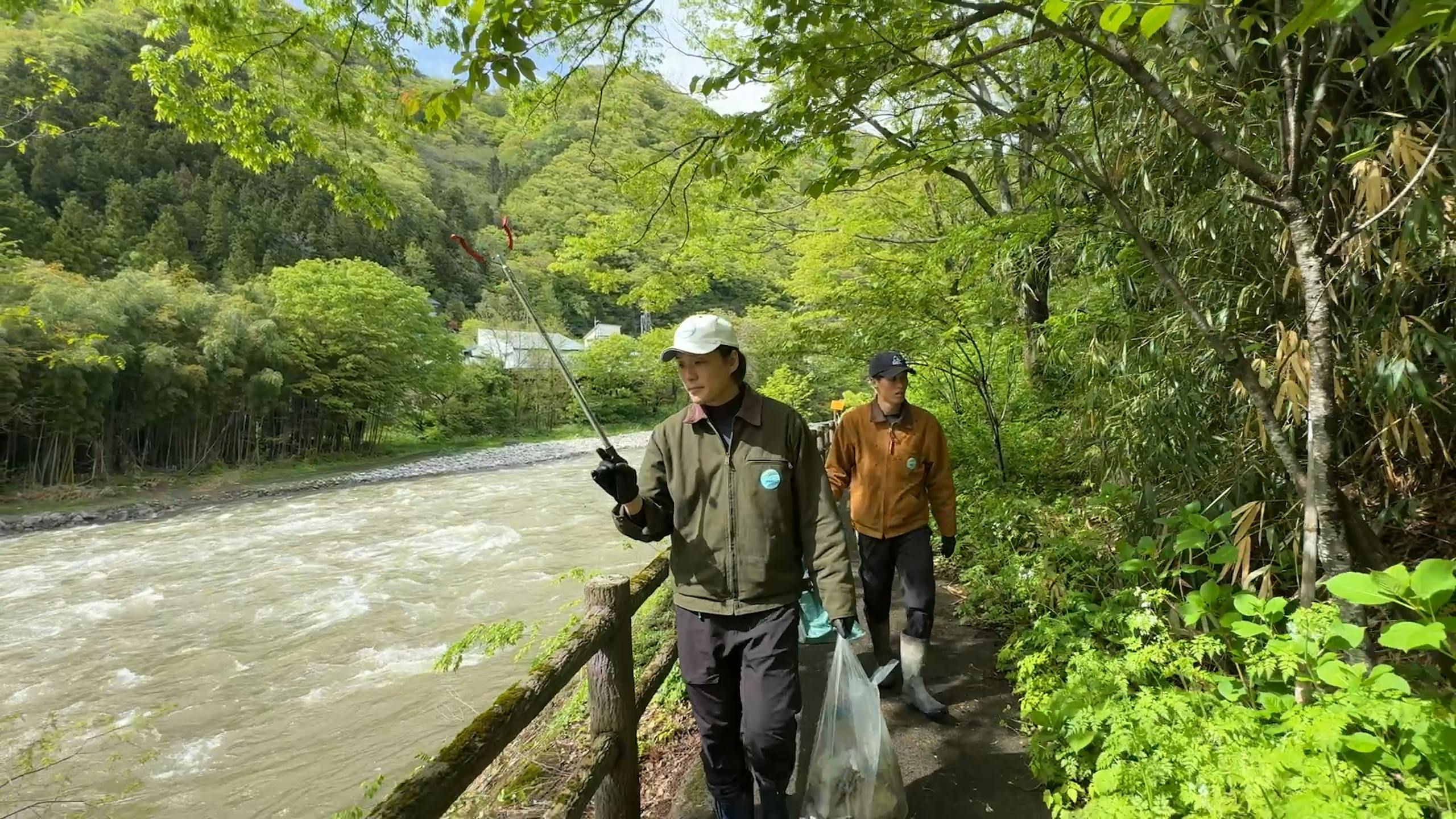 今回は、遊歩道に落ちているごみを一気に回収していきます。