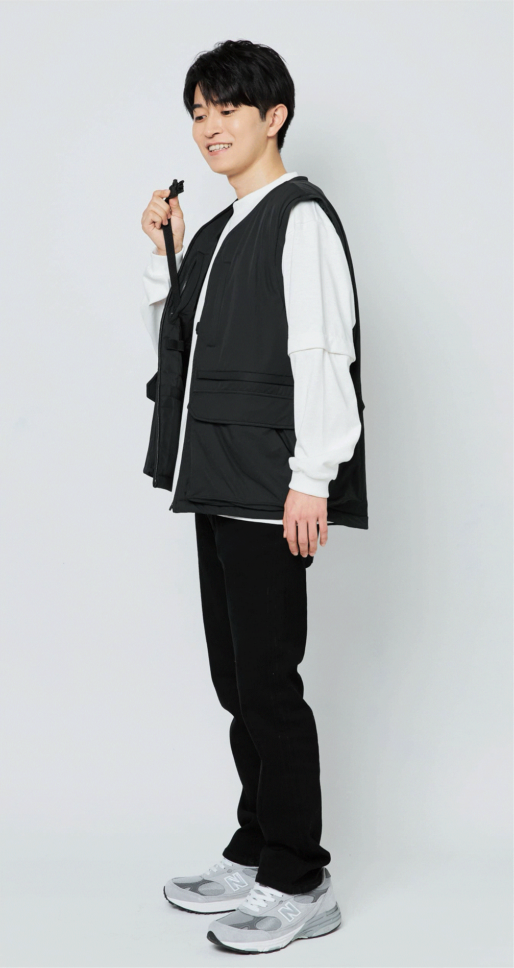 ウールジャケットや、レザージャケットなど、お気に入りのアウターのインナーとして着用することで、保温性や収納力を大幅に向上させてくれます!