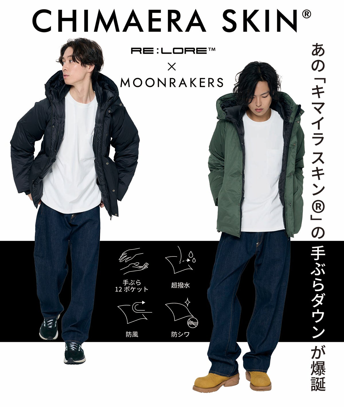 MOONRAKERSの代表的な素材「CHIMAERA SKIN®」が、RE:LORE™の「手ぶらダウン」に革新をもたらしました!