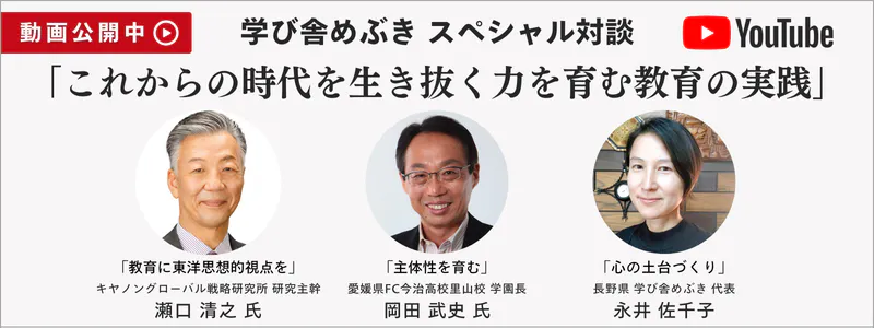 テーマは「これからの時代を生き抜く力を育む教育の実践」 主体性を育む、教育に東洋思想的視点を、心の土台づくりなど、様々な切り口から、これからの教育についてお話をうかがいました。