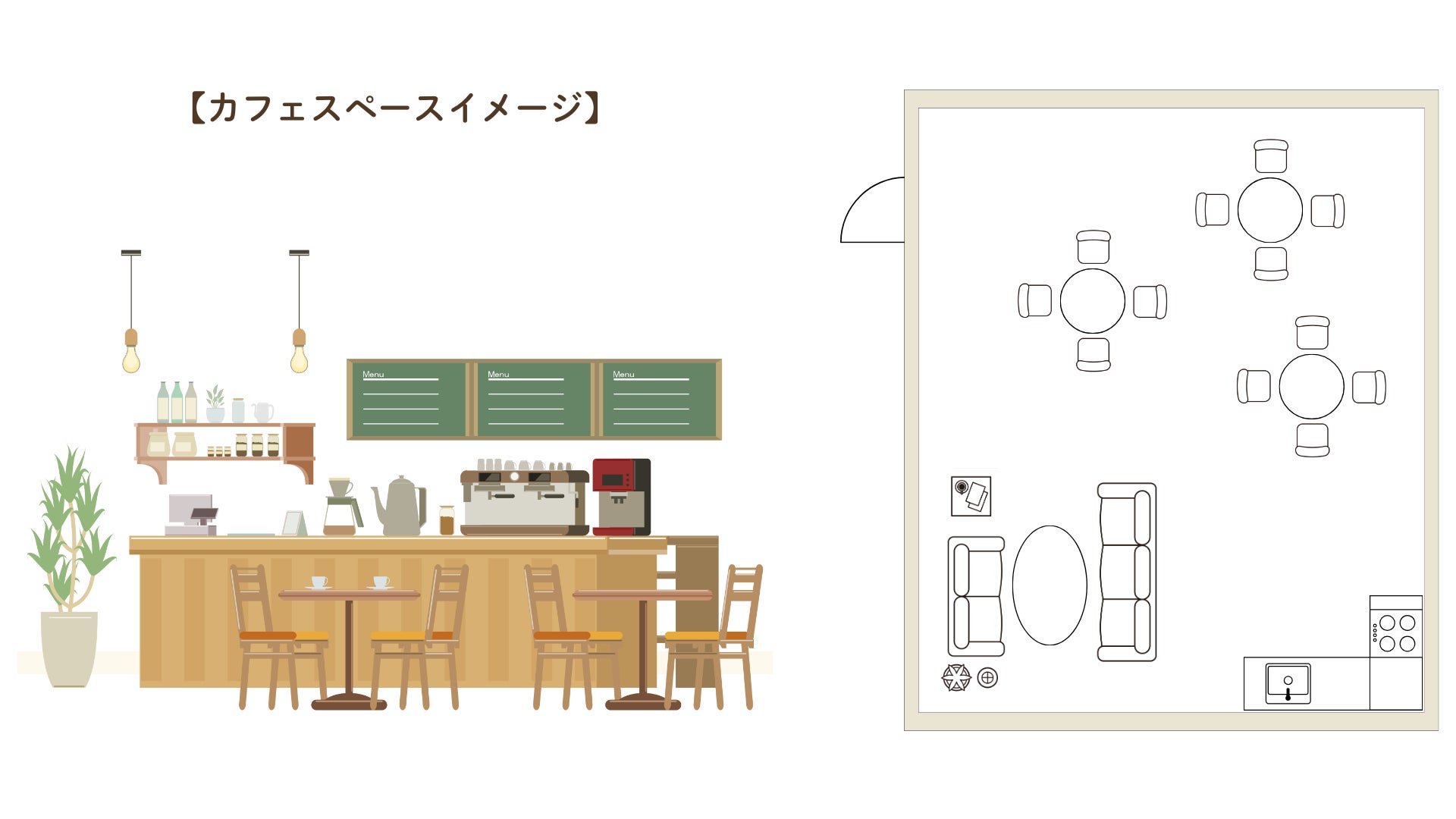 また、カフェスペースも常設し、地域の方が気軽に立ち寄れる場所も作ります(イラストはイメージです)。