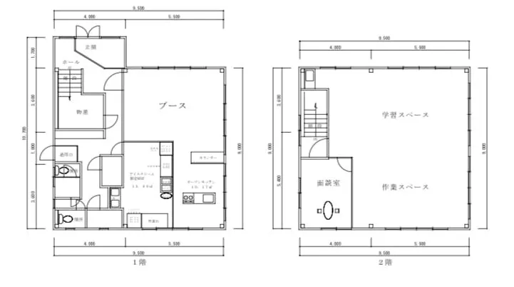 (1階:調理場、ジェラート製造、カフェスペース/2階:作業場、子どもたちの活動スペース)
