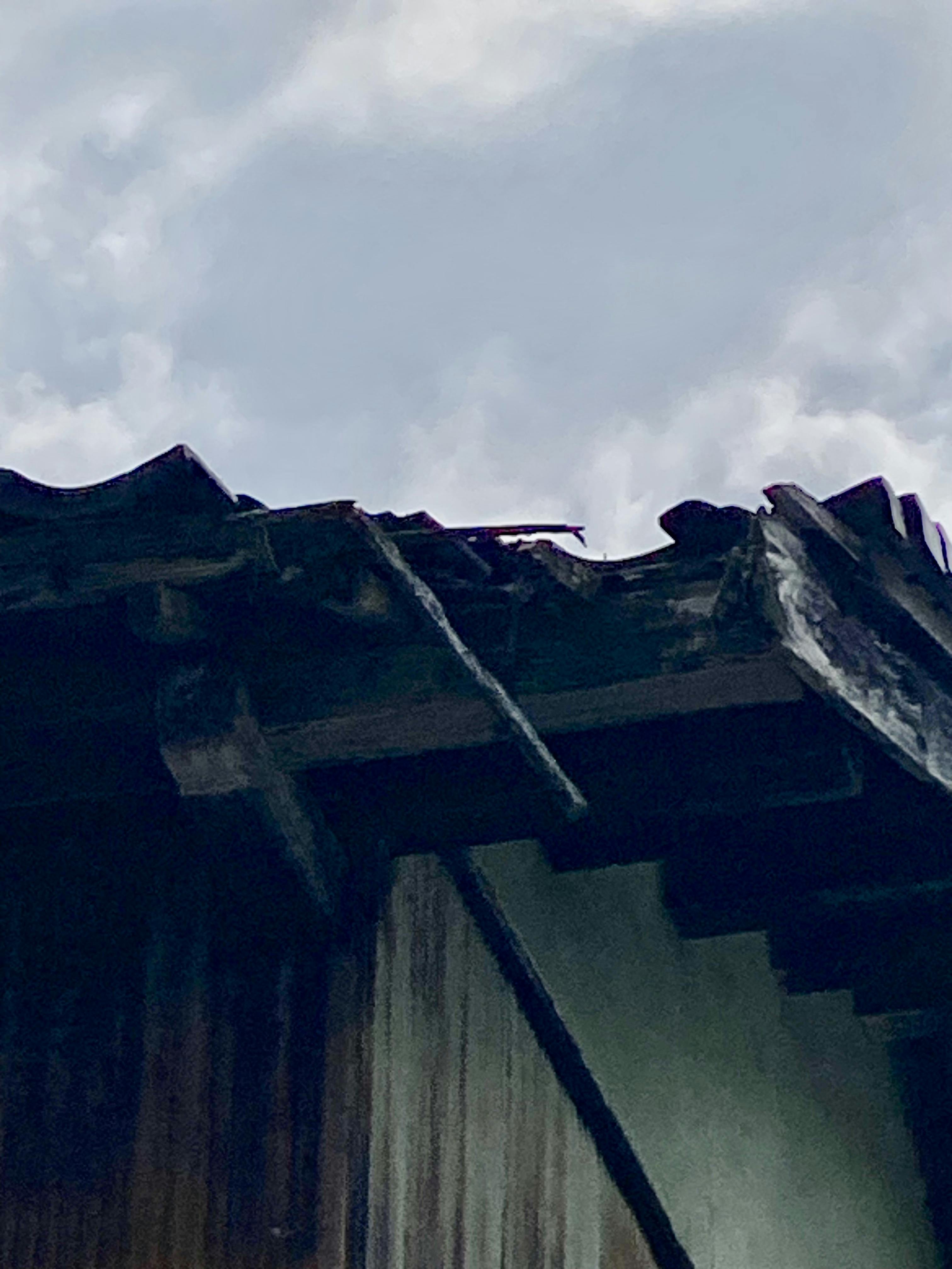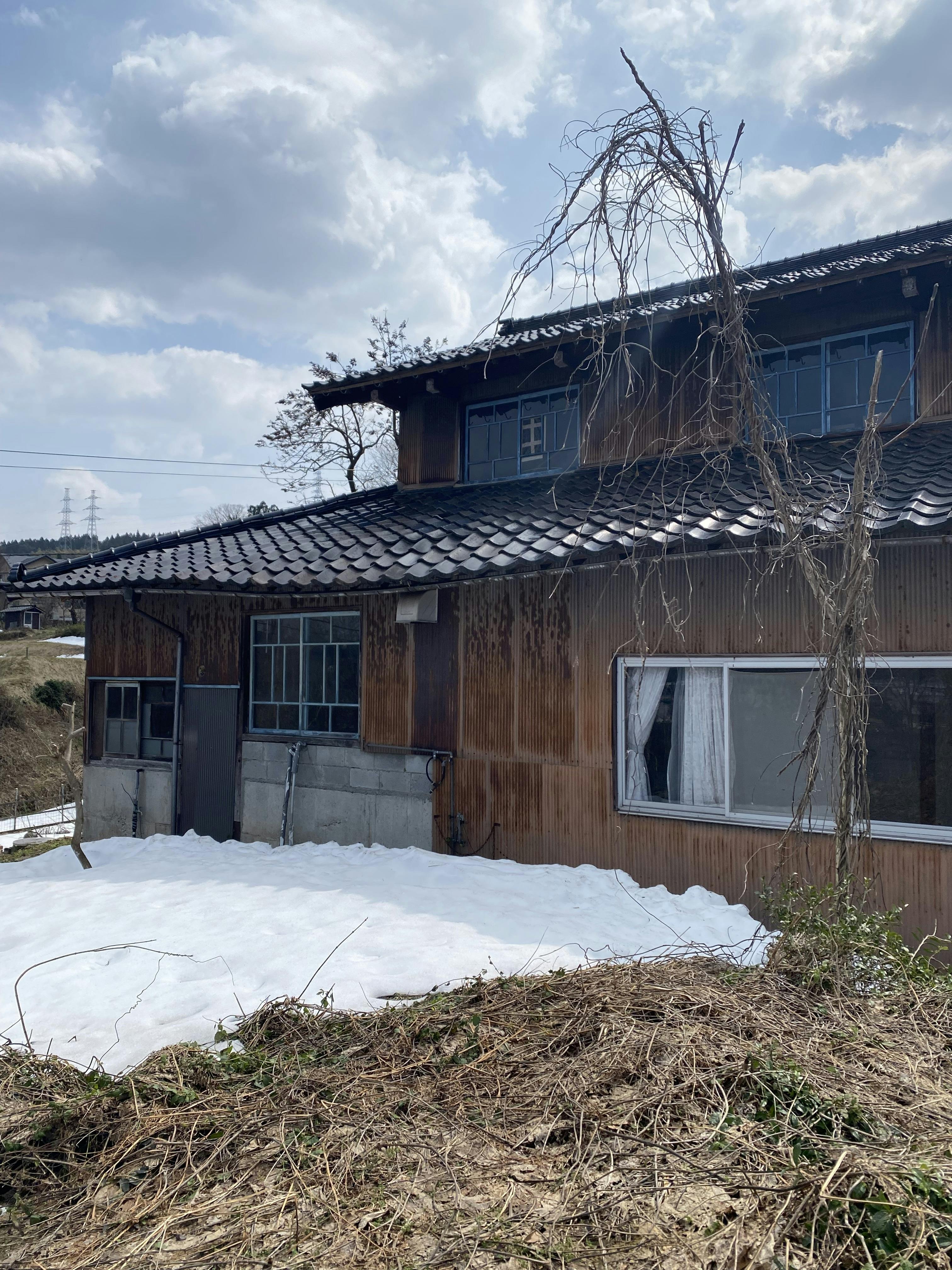 そして波打ったように見える下屋は、どうやら雪の重みで下地の支えの何かが折れたようです。