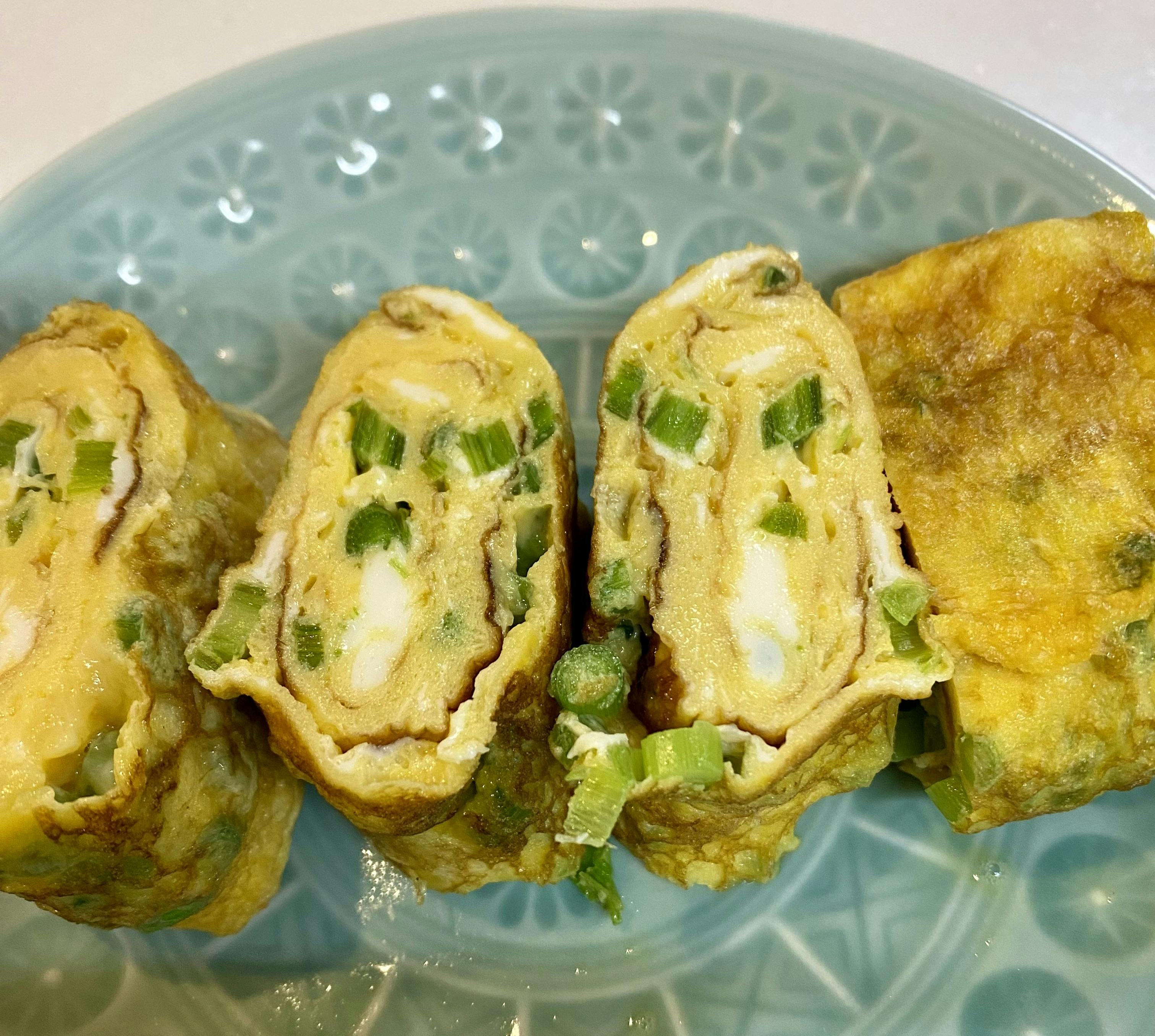 茗荷の茎の醤油漬けと卵焼き