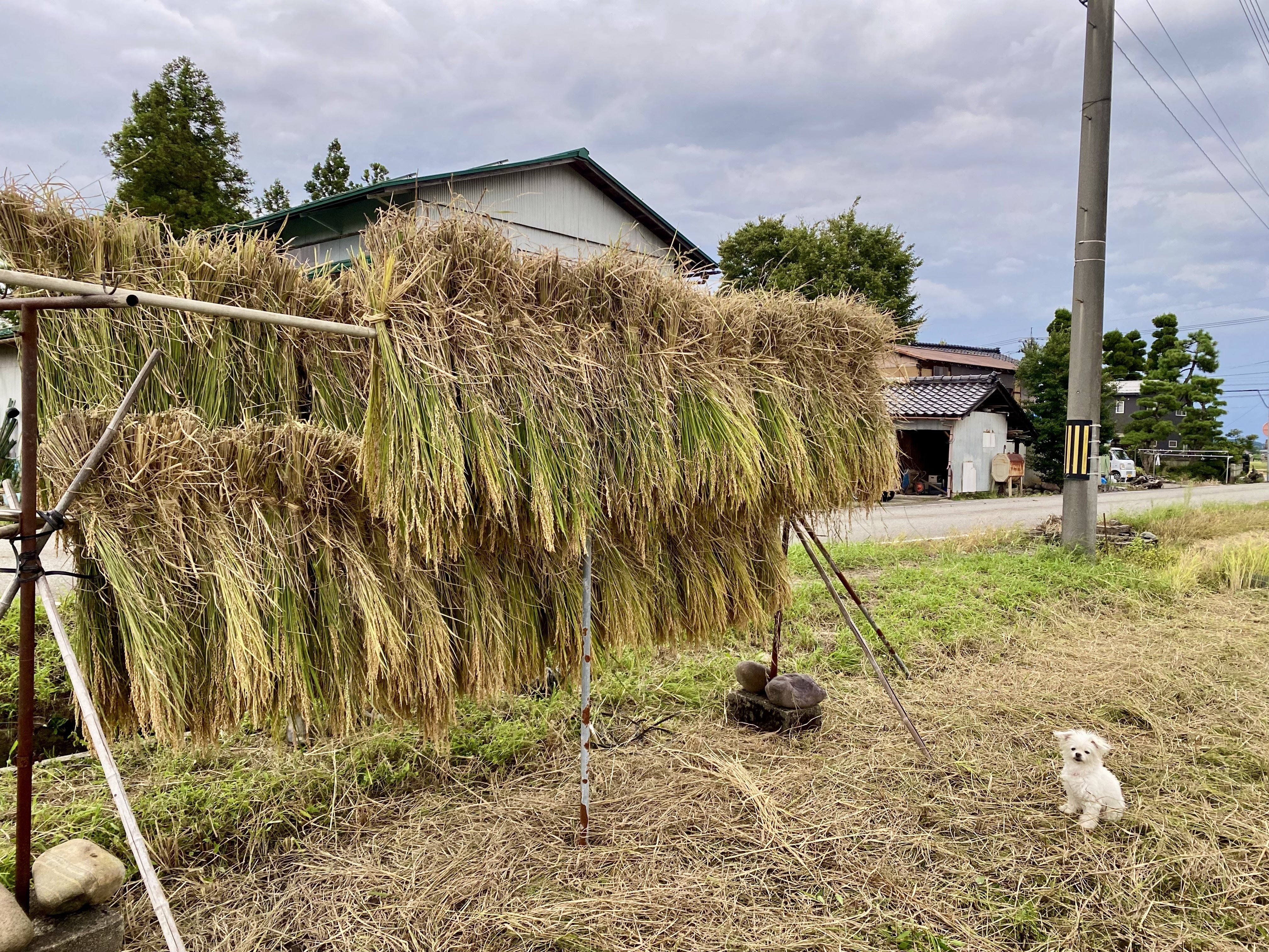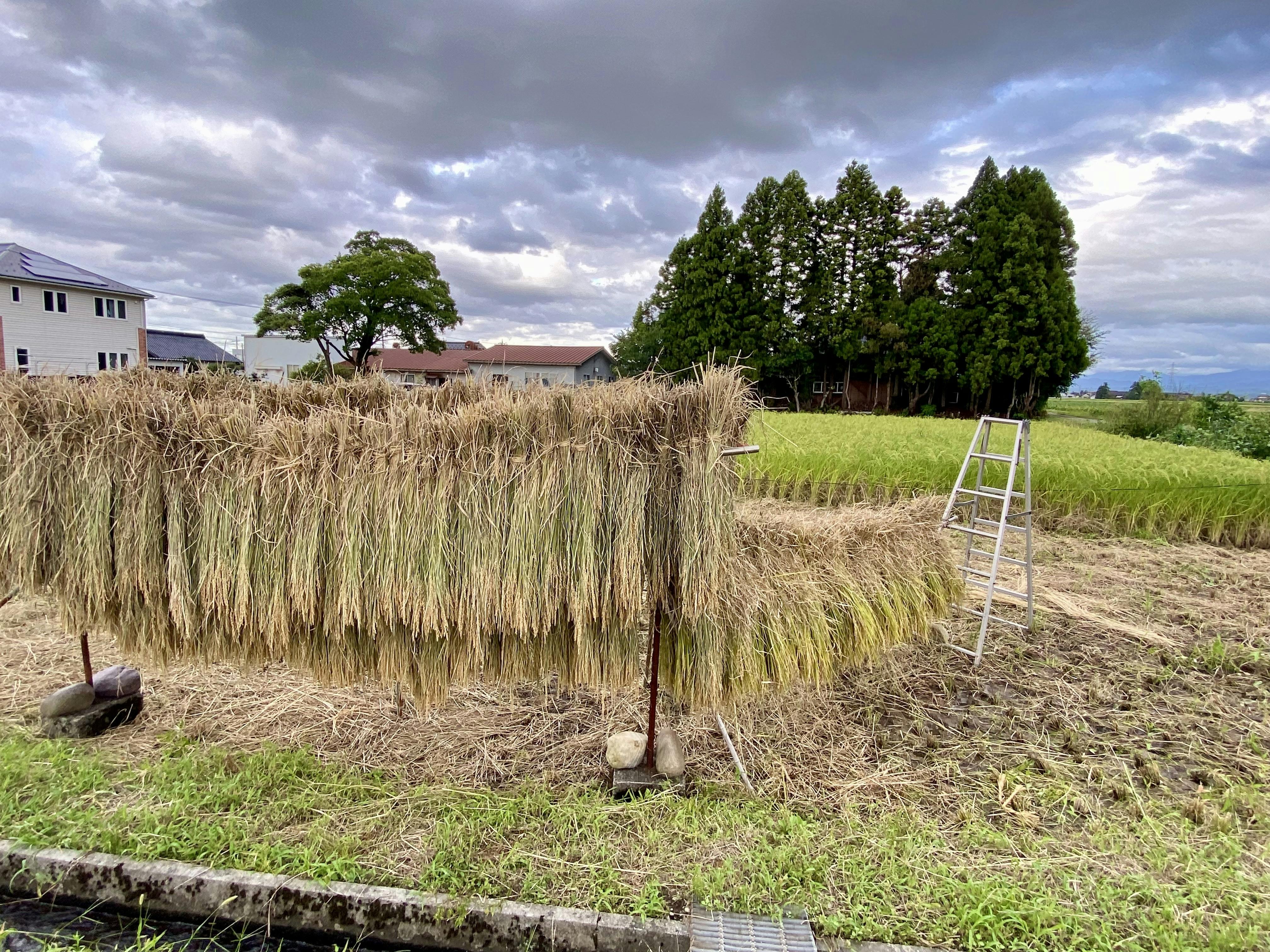 コシヒカリの実りを迎えて刈り、昔ながらの「はさかけ」にしました。