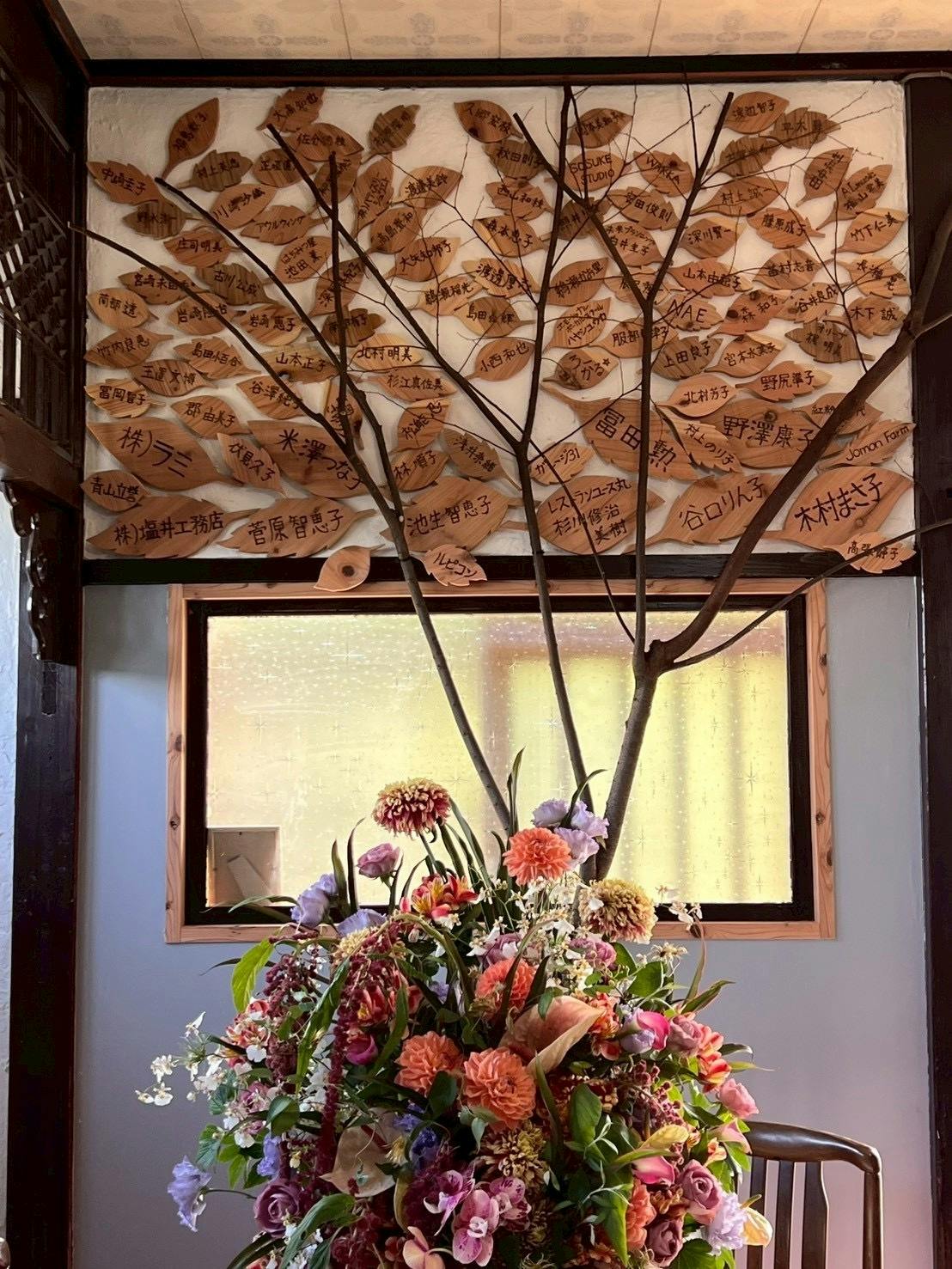支援してくださった方のお名前を端材を木の葉に切っていただき焼きコテでお一人お一人描かせていただきました。