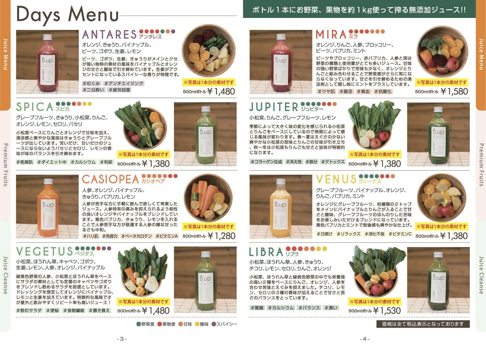 ご来店時ビーアップのジュースどれでもお好きなものを2本お渡しします。