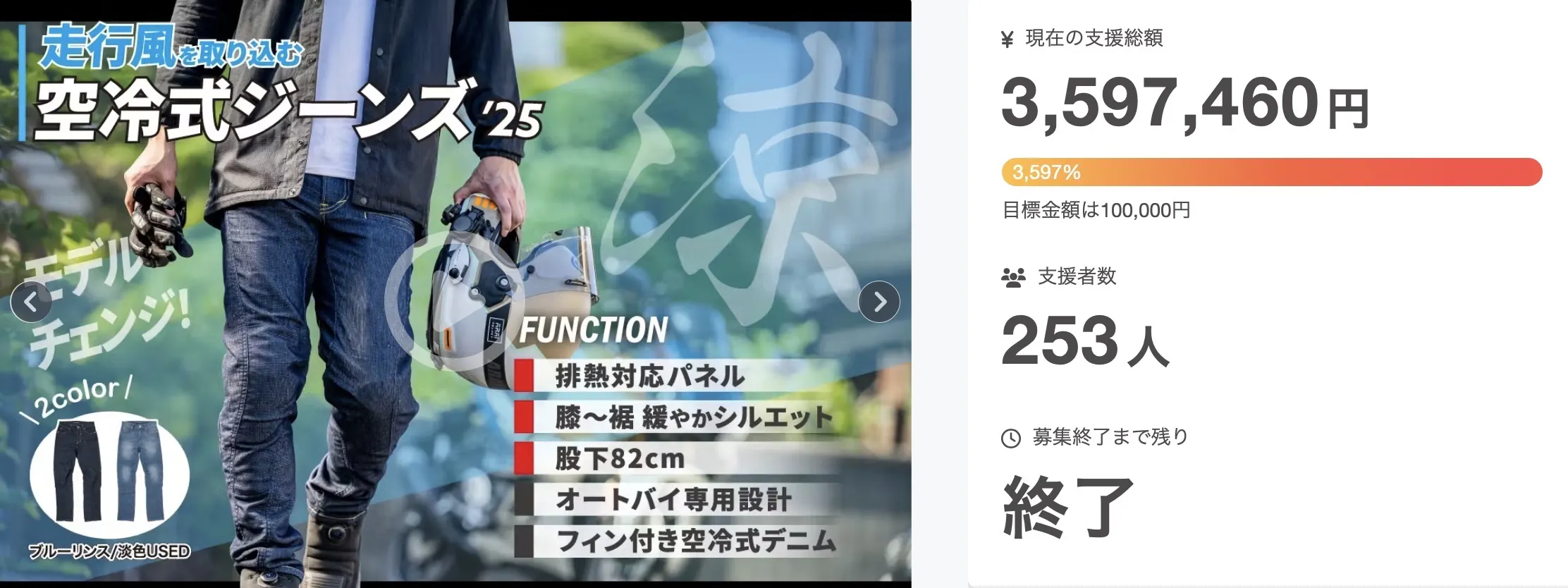 2026/03/16 20:00こちらの活動報告は支援者限定の公開です。【先行予約価格14,480円】エアインテーク空冷式ジーンズ 第一期先行予約受付中