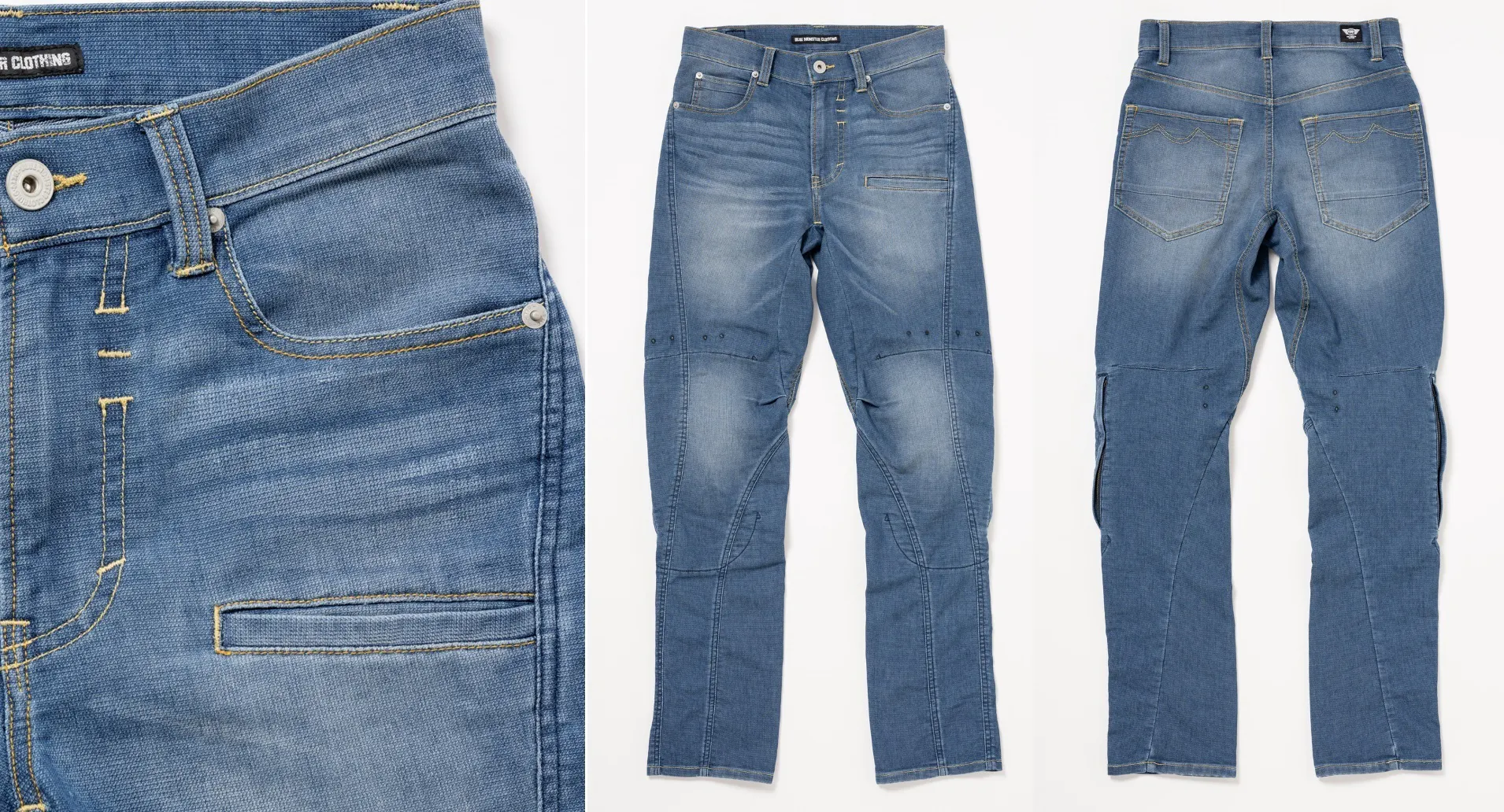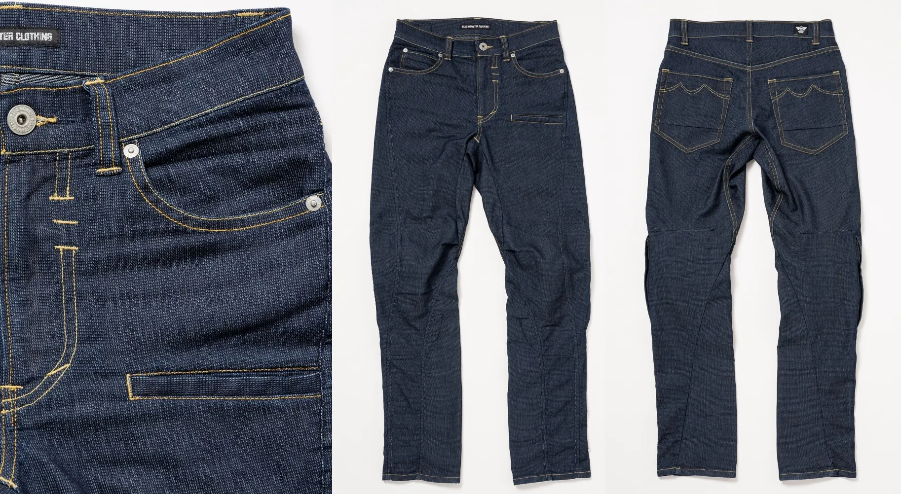 バイク×ファッション×ファンクションを掲げ、数年でBMCはバイク用ジーンズで日本一となっています。オートバイ専用設計なのは言うまでもないですが、ファッションとしても妥協なく、バイク以外でもご着用頂ける見た目と拘りが沢山詰まっています。
