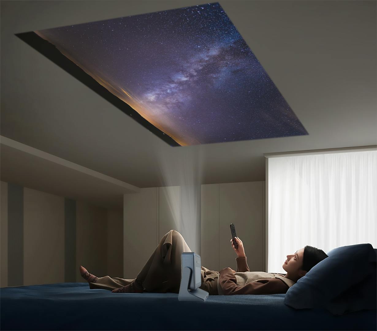 さらに、天井への直接投影も可能。お部屋で星空を眺めたり、穏やかな雰囲気を演出したりと、特別なひとときをお届けします。