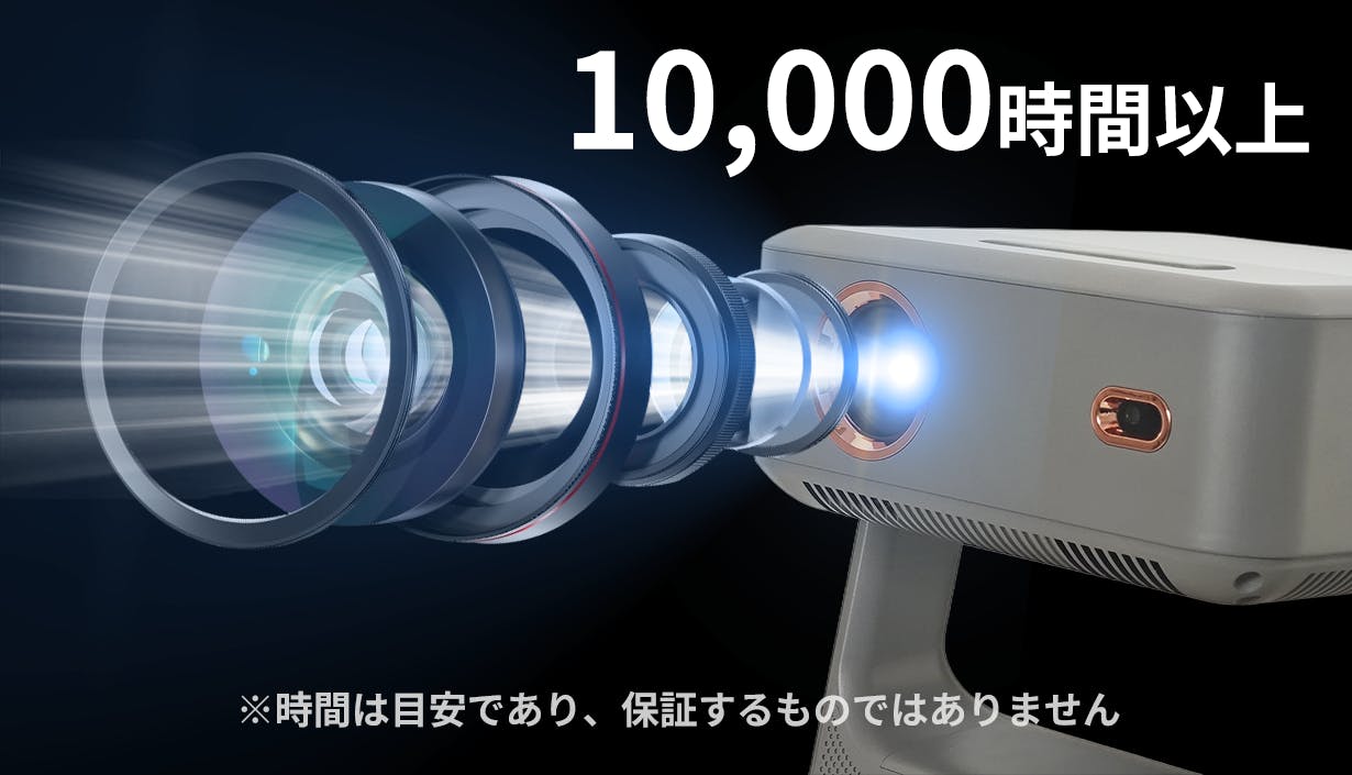 光源寿命が10,000時間に大幅アップしました。2時間の映画を毎日1本見て約13年、2時間の映画を1週間に2本見て約48年、と長くお楽しみいただけます。