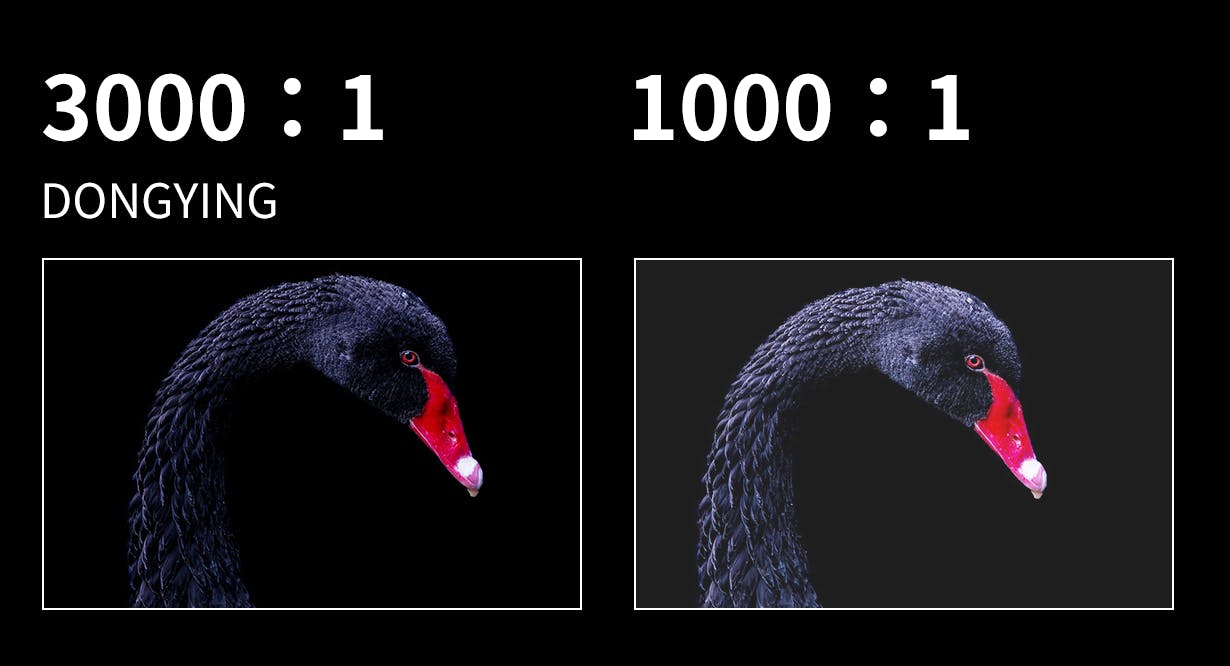 DONGYINGは、3,000:1の高いダイナミックコントラストを誇ります。豊かな黒の階調を表現し、暗いシーンの多い映画でも被写体の立体感や細部のディテール、奥行き感をくっきりとリアルに再現します。
