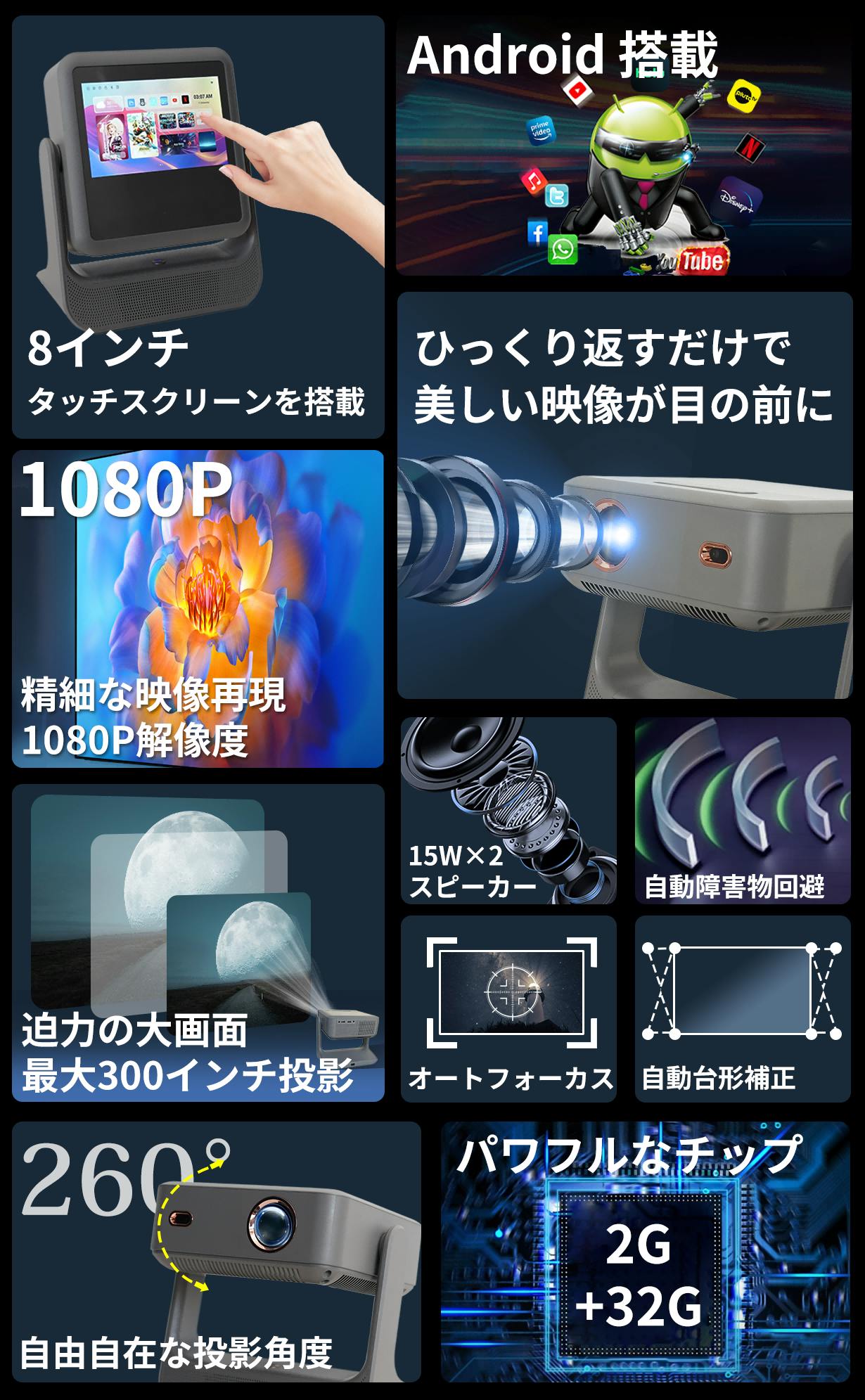 このモデルは、直感的な操作が可能なタッチスクリーンと、高い適応性を誇るAndroidシステムを搭載しており、YouTubeやNetflixなどのアプリも簡単にダウンロードし、充実したエンターテインメント体験を提供します。