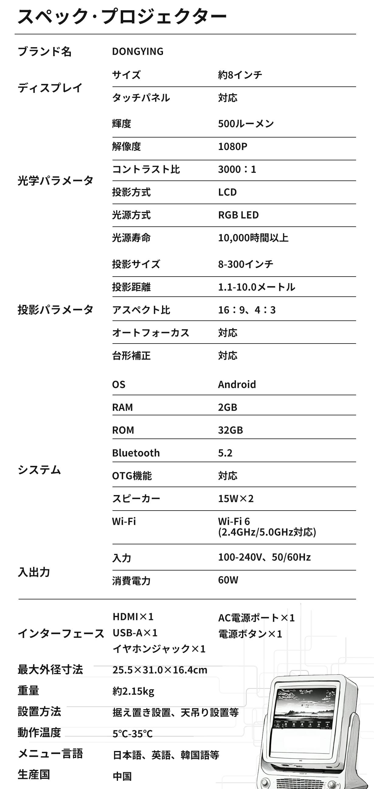 『DONGYING 』は、単なるプロジェクターではありません。エンターテイメント性、生産性、そして創造性を一つに融合させた次世代のオールインワンソリューションです。