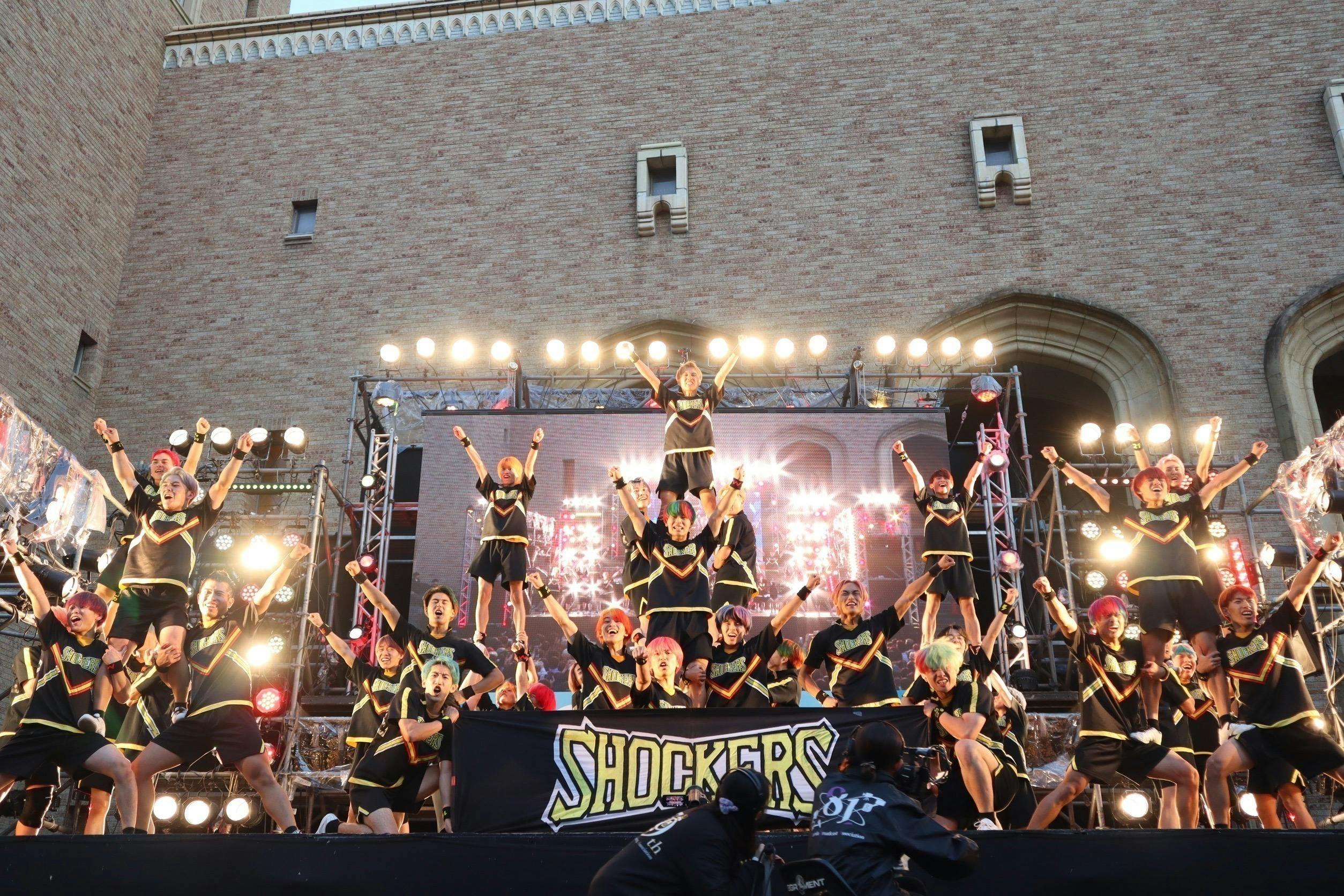 僕たちは世界的にも珍しい男子のみで構成されたチアリーディングチームです!SHOCKERSは日本に存在する男子チアのチームの中で最初にできたチームで、二十年の歴史があります!