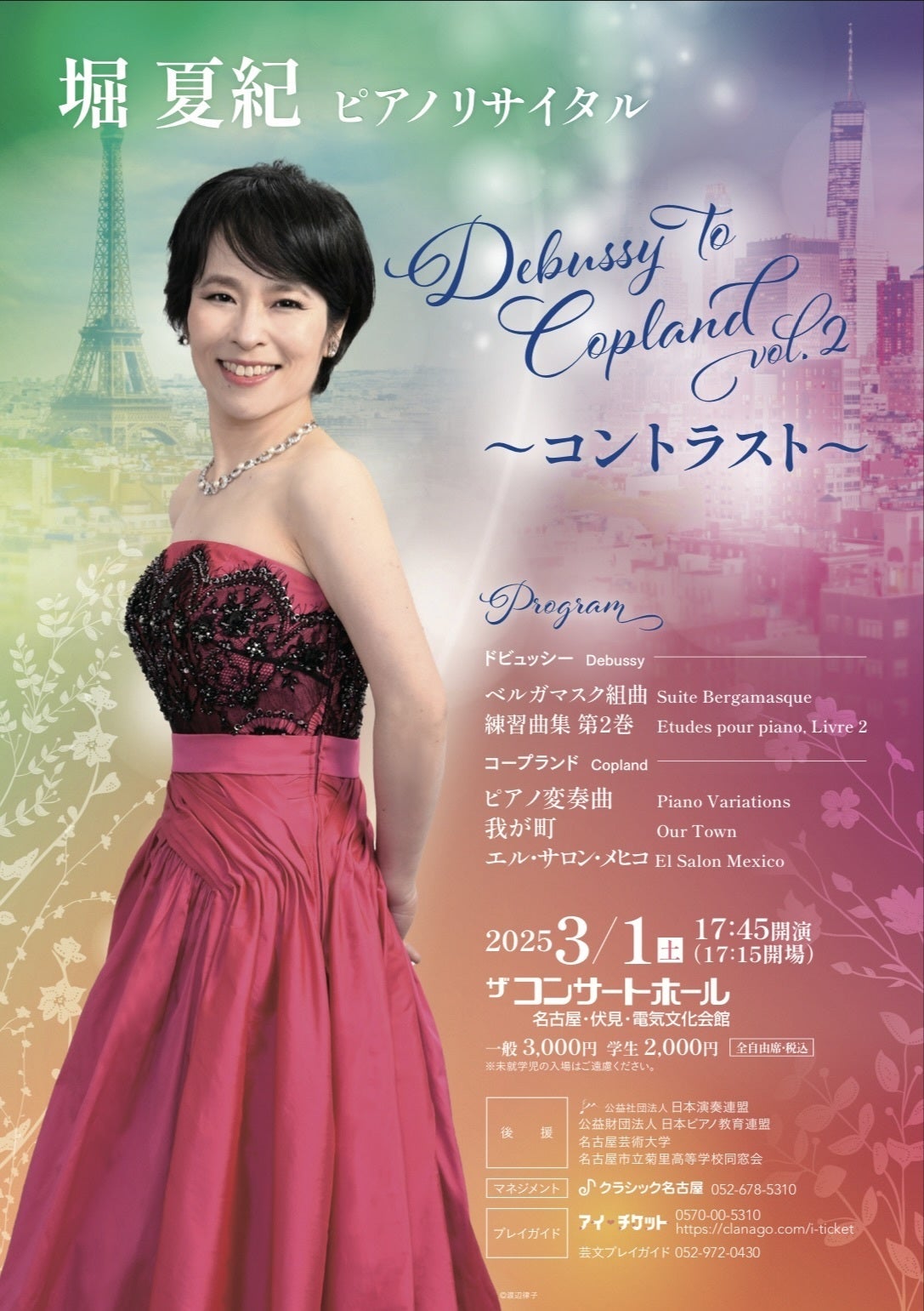 ◇リサイタル・チケット「堀夏紀ピアノリサイタル Debussy to Copland vol.2〜コントラスト〜」